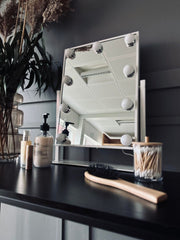 Vår sminkspegel har tre olika ljusinställningar, vilket ger dig möjligheten att justera ljuset efter dina behov. Denna funktion gör det enkelt att använda spegeln vid alla ljusförhållanden, oavsett om det är dag eller natt. Genom att erbjuda olika ljusinställningar kan sminkspegeln bidra till att förbättra din sminkrutin och ge ett mer professionellt resultat.