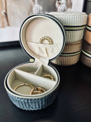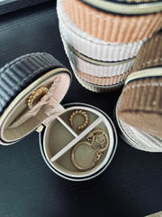 Med en diameter på 8 cm erbjuder denna smyckesask tillräckligt med utrymme för att förvara dina mest värdefulla smycken på ett säkert och organiserat sätt. Dess kompakta storlek gör den inte bara praktisk för förvaring, utan också enkel att placera på vilken yta som helst i ditt hem, vilket bidrar till en stilren inredning.