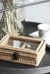Organisera dina skatter och minnessaker med stil och elegans i detta smyckeskrin med glasfront. Skrinet erbjuder en balans mellan funktionalitet och estetik, och blir en fin detalj i ditt hem samtidigt som det håller ordning på dina smycken.