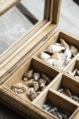 Vårt smyckeskrin är idealiskt för att förvara dina värdefulla smycken eller andra fina fynd. Med sin robusta konstruktion och eleganta design erbjuder det inte bara en säker förvaringsplats, utan även en attraktiv display för dina ägodelar. Detta smyckeskrin är mer än bara en förvaringslösning, det är en del av din inredning och livsstil.