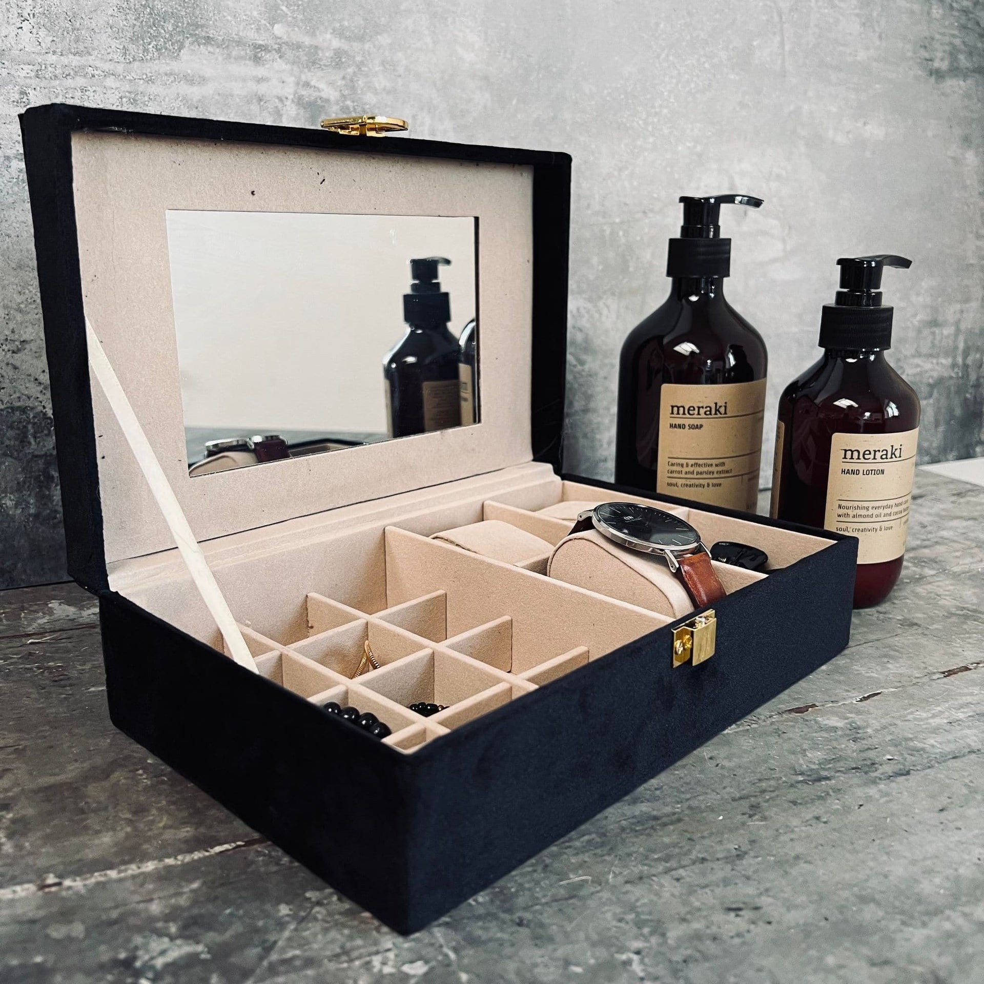 Du behöver en plats att förvara dina smycken på ett organiserat och stilfullt sätt. Detta smyckeskrin i svart är det du letar efter. Det är inte bara en förvaringslösning, utan också en elegant inredningsdetalj för ditt hem.