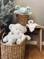 Letar du efter en mjuk och trygg följeslagare till din bebis? Denna ljusblå snuttefilt erbjuder både komfort och en subtil underhållning för små händer. Utmärkt för stunder av lugn och trygghet när din bebis behöver det som mest.