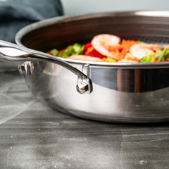 Hybrid sauterpanna är tillverkad i tre lager av högkvalitativt stål, inklusive rostfritt stål och aluminium. Denna konstruktion möjliggör en jämn och snabb värmefördelning, vilket gör matlagningen mer effektiv. Det rostfria stålet ger pannan en robust hållbarhet, vilket säkerställer långvarig användning utan att kompromissa med prestandan. Kombinationen av dessa material skapar en pålitlig och funktionell kökslösning.