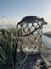 Denna solcellslampa är tillverkad av glas och jute, vilket ger den en naturlig och robust estetik som passar in i de flesta inredningsstilar. Jute är ett hållbart och miljövänligt material, vilket gör lampan till ett ansvarsfullt val för ditt hem. Glasdelen av lampan sprider ljuset varsamt och skapar en mysig atmosfär när mörkret faller.