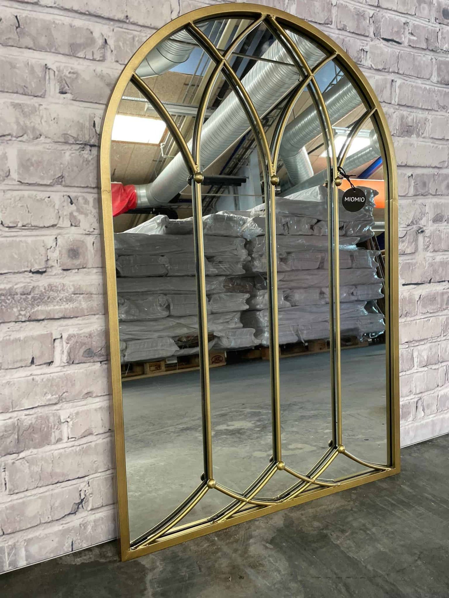 Behöver du en ny vinkel på din inredning? Denna spegel i mässing och järn, med sina imponerande dimensioner, kan ge ditt rum en distinkt karaktär. Kom ihåg, det är en utställningsmodell som väntar på sin nya ägare!