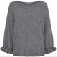 Tröjan är designad med rund halsringning och 3/4-ärmar, som avslutas med en fin volangkant. Det gör den till ett lätt och feminint plagg som fungerar bra som ett enkelt statement i garderoben.