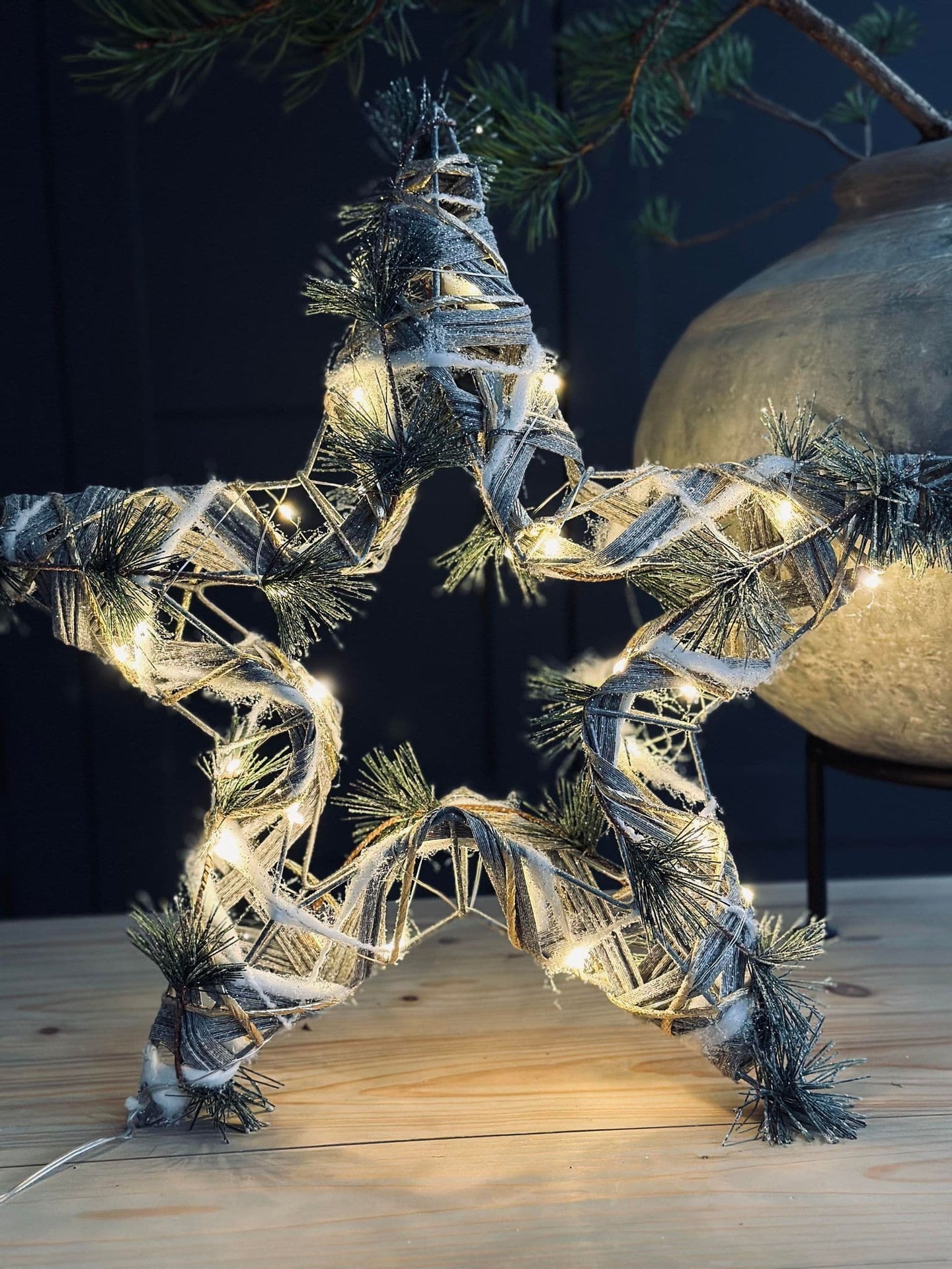 Låt vår stjärna med LED-ljus och gran sprida en magisk stämning i ditt hem denna jul. Skapa en varm och inbjudande atmosfär som får dig att känna dig extra mysig och avslappnad. Ge ditt hem den kärlek det förtjänar med denna vackra dekoration.
