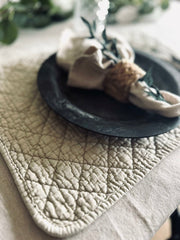 Det här är ett bordsunderlägg som är mer än bara praktiskt - det är en vacker inredningsdetalj. Med sin stenvaskade quiltade design i naturfärg ger den ett rustikt och hemtrevligt uttryck till ditt bord. Synliga sömmar och en texturerad yta tillför ytterligare charm och karaktär. Detta är en produkt för dig som uppskattar hantverk och naturliga material i din bordsskänning.