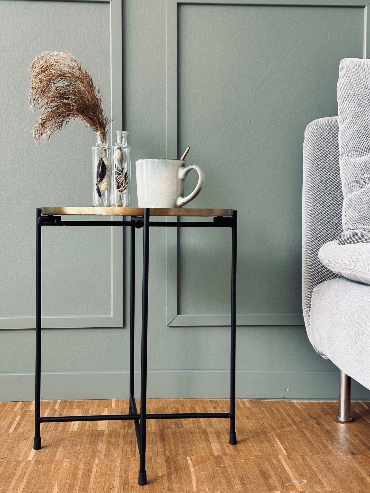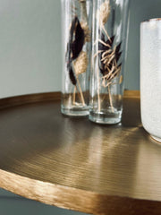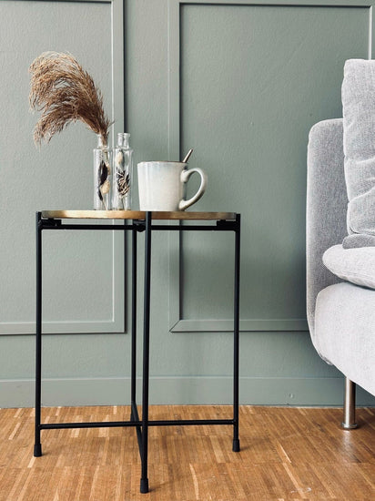 Detta svarta soffbord med en bordsskiva i guldmetall erbjuder en modern och sofistikerad touch till ditt hem. Dess unika design och färgkombination gör att det sticker ut och blir en centralpunkt i rummet. Bordsskivan i guldmetall ger en lyxig känsla och dess robusta konstruktion garanterar långvarig användning. Detta soffbord är inte bara praktiskt för att hålla drycker eller böcker inom räckhåll, utan det tillför även en elegant estetik till din inredning.