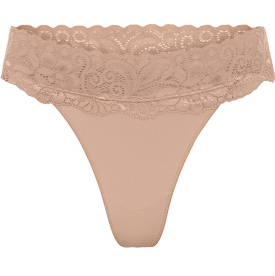 Stringtrosan är tillverkad av ett material som består av 92 % polyamid och 8 % elastan. Denna kombination ger en mjuk och flexibel känsla mot huden, vilket bidrar till en behaglig passform som följer kroppens rörelser. Polyamiden ger hållbarhet och slitstyrka, medan elastanen erbjuder elasticitet, vilket säkerställer att trosan behåller sin form och ger stöd hela dagen.