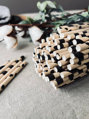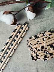 Våra sugrör tillverkade av papper erbjuder en hållbar lösning för dina dryckesbehov. Papperssugrören är robusta nog för att stå emot vätska utan att bli mjuka, samtidigt som de är biologiskt nedbrytbara och komposterbara. Detta gör dem till ett utmärkt val för den miljömedvetna konsumenten. Dessutom tillför de en charmig touch till alla drycker.