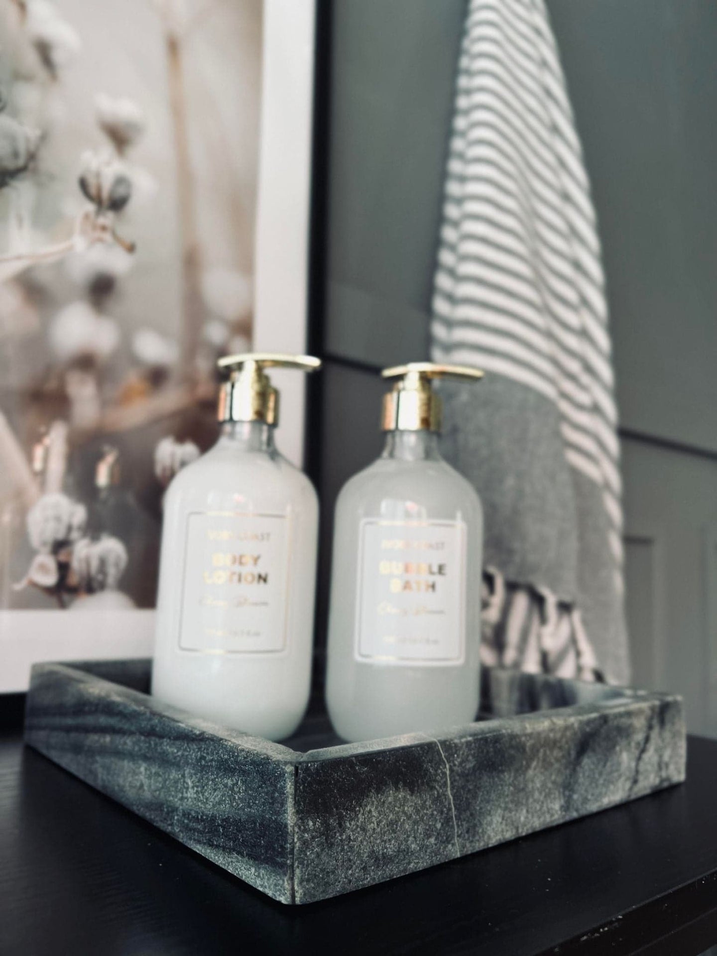 Ge ditt hem en touch av elegans och ordning med vår svart/grå marmorskiva. Slipp stressen över rörigt smink och oupphittade smycken - investera i en stilren lösning som ger dig både praktisk förvaring och en lyxig atmosfär. För ett organiserat och elegant hemliv.