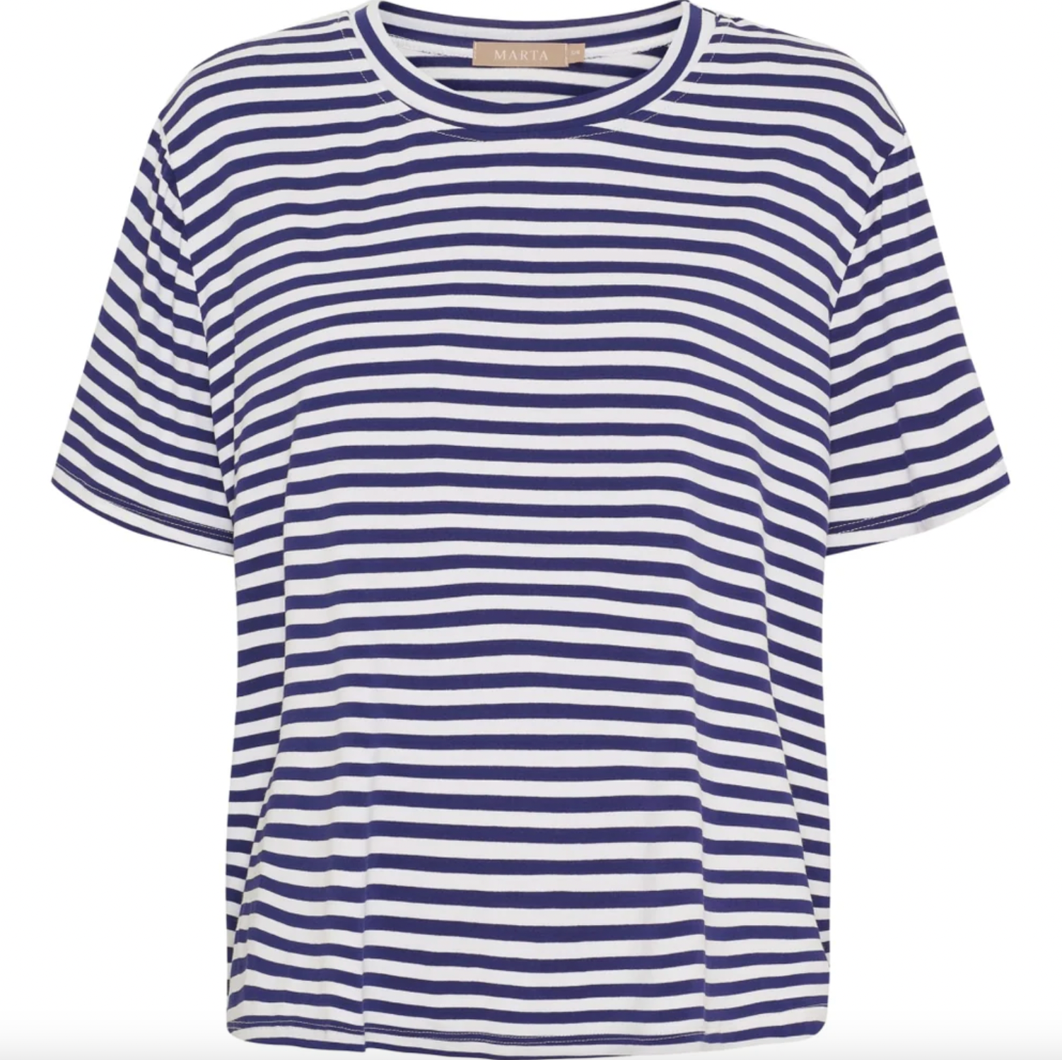Upplev den ultimata komforten med vår marinrandiga t-shirt och säg adjö till obekväma kläder. Ge dig själv friheten att röra dig obehindrat hela dagen. Prova den idag och upptäck skillnaden!