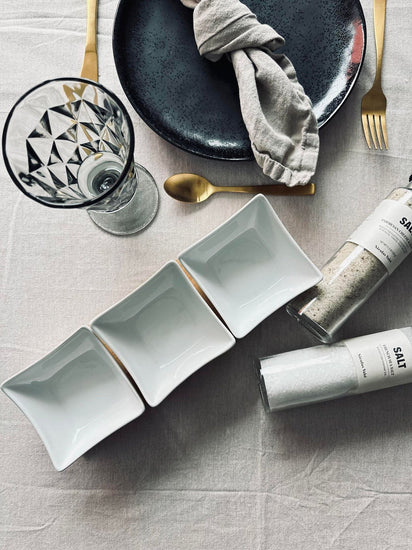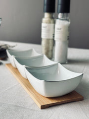 - Inkluderar tre vita porslinsskålar, var och en 6cm x 10cm