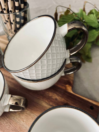 Njut av din te-stund med Tekopp vit porslin med guldhandtag – Mix, ett tillskott till ditt kök som gör varje kopp te till en lyxig upplevelse. En vacker och praktisk design som passar alla smaker, och gör din te-stund ännu trevligare.