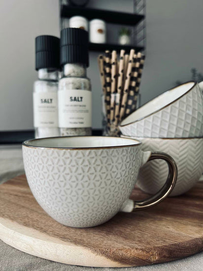 Skäm bort dig själv med en lyxig tekopp i vitt porslin med guldhandtag - Mix. Låt varje sip av ditt favoritte bli en njutning för både sinnet och själen. Ge dig själv den vardagslyxen du förtjänar!