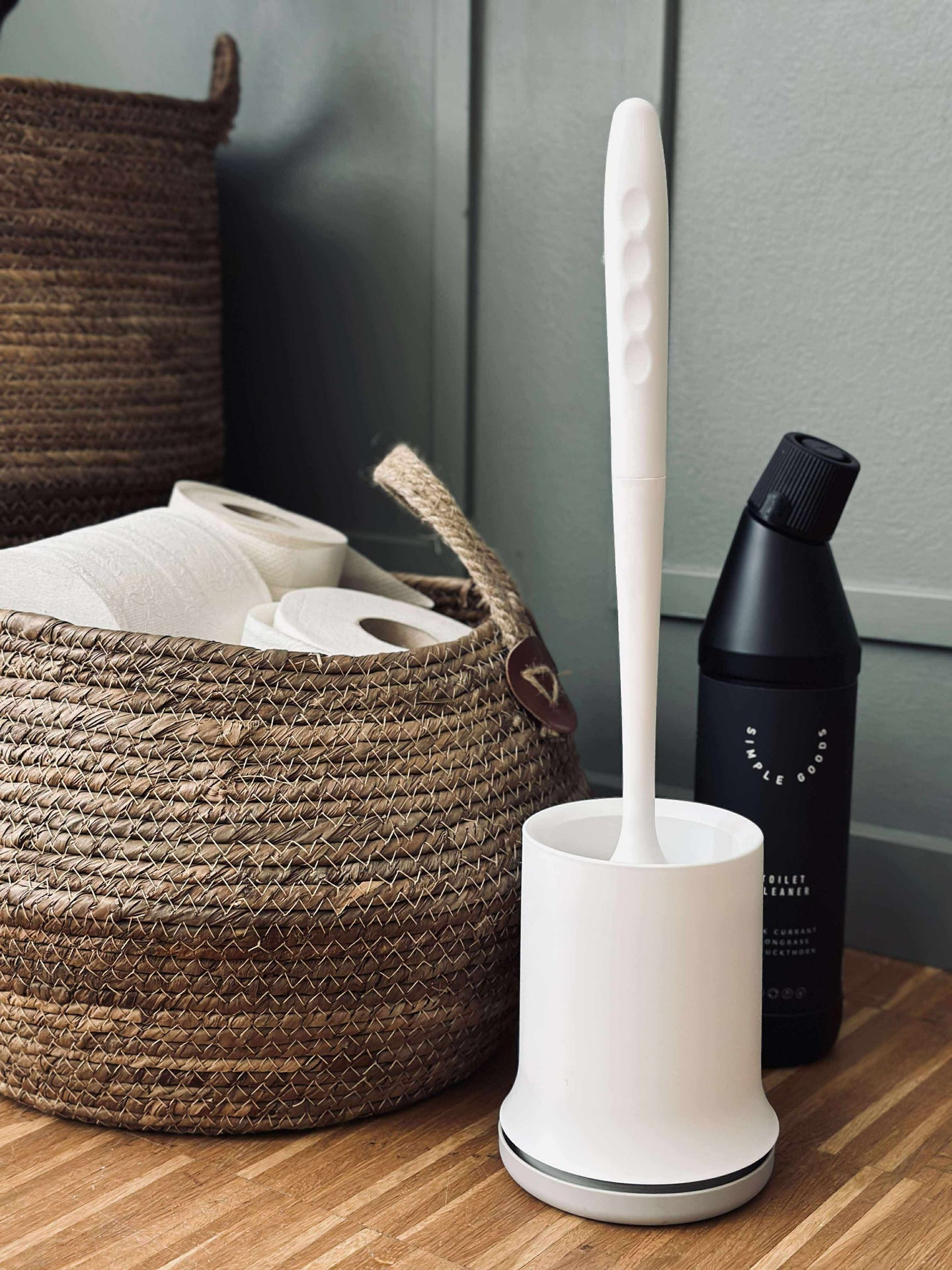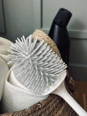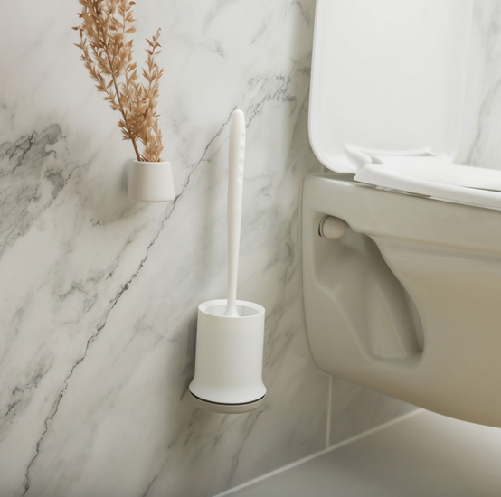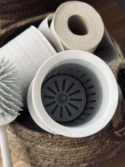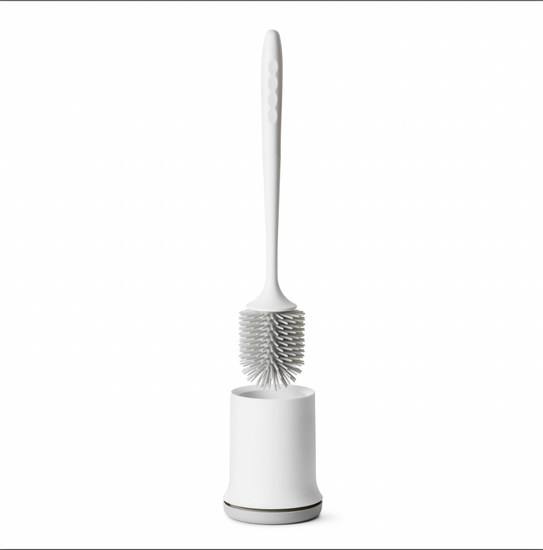 Denna toalettborste är tillverkad av silikon med ett flexibelt borsthuvud som effektivt anpassar sig efter olika ytor i toaletten. Det vattenavvisande materialet säkerställer att borsten håller sig torr och fri från bakterier, vilket bidrar till en mer hygienisk rengöring. Silikonet gör även att borsten är lätt att skölja av och hållbar över tid.