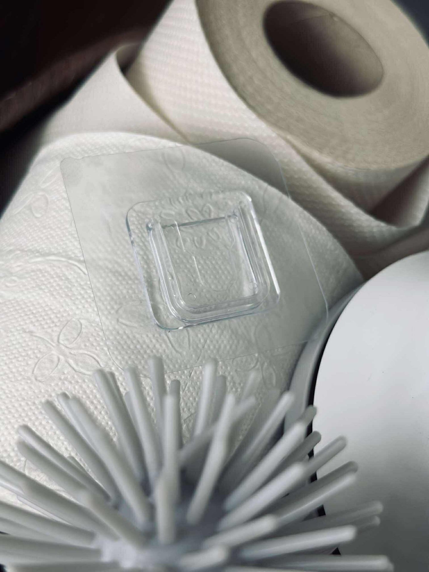 - Paketet innehåller en silikon toalettborste och en väggmonterad hållare med klibband