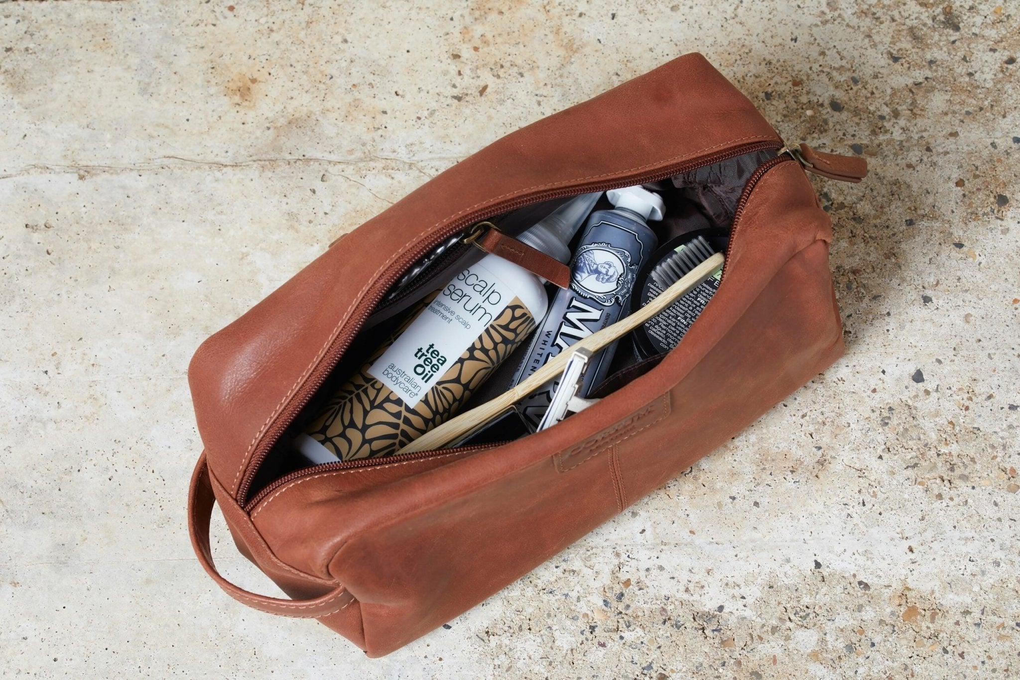 Resan kan bli stressig utan rätt organisation. Med Toalettväska Cognac Läder, ordnas ditt hygienbehov på ett bekvämt och sofistikerat sätt. Den tjänar inte bara ditt syfte, men också blir en chic tillägg till ditt resekit.