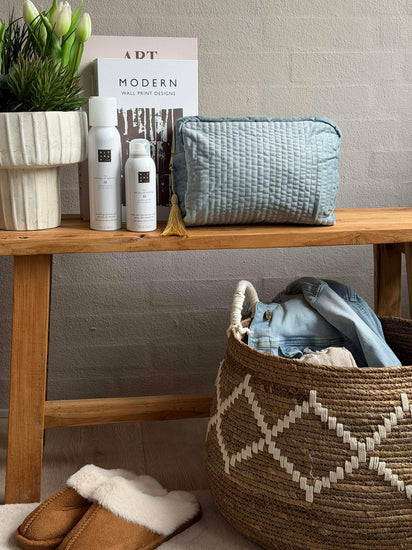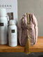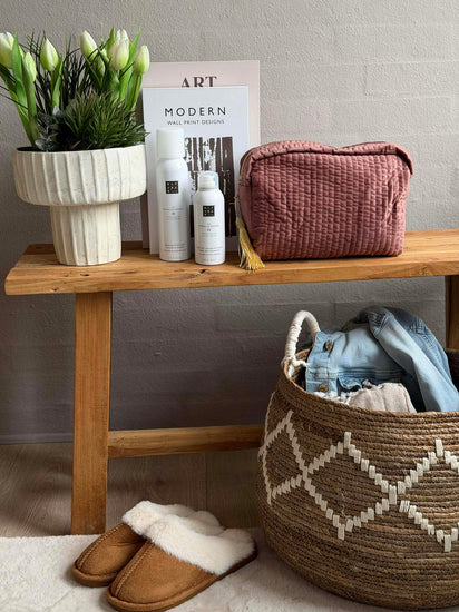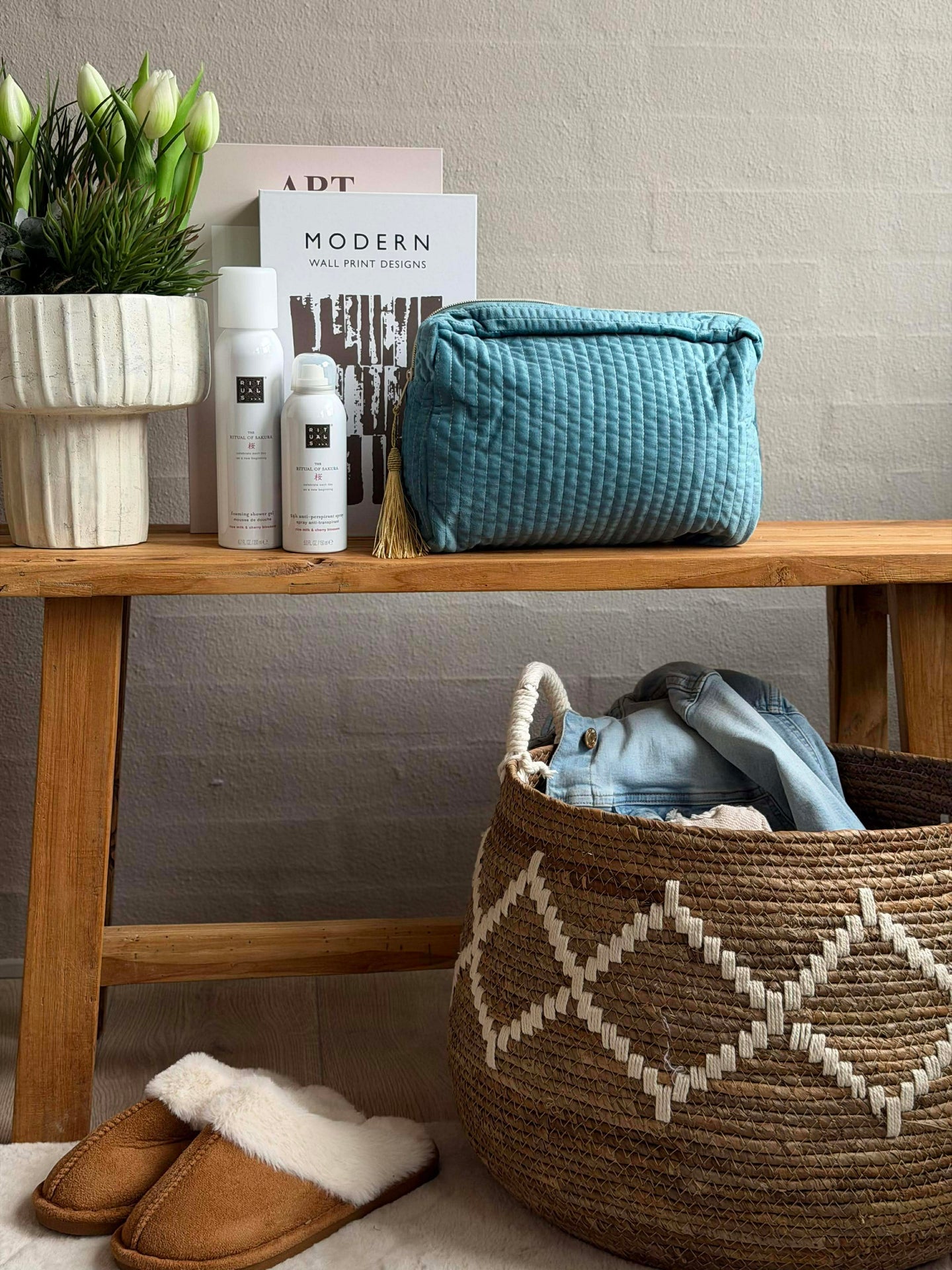Toalettväska Gia är en mjuk necessär för förvaring av toalettartiklar – både när du är på språng och när sakerna ska samlas snyggt hemma. Den är utförd i babyvelour och har ett mjukt, textilt uttryck som gör att den är lätt att ha framme på badrummet eller att packa ner i väskan.