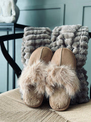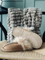 Den mjuka pälsen på insidan av tofflorna ger en lyxig och bekväm känsla för fötterna. Denna klädsel ger inte bara komfort och värme under kalla dagar, utan hjälper också till att förebygga skavsår och irritation som kan orsakas av hårdare material. Med dessa tofflor kan du njuta av en mjuk och mysig känsla varje gång du tar ett steg.