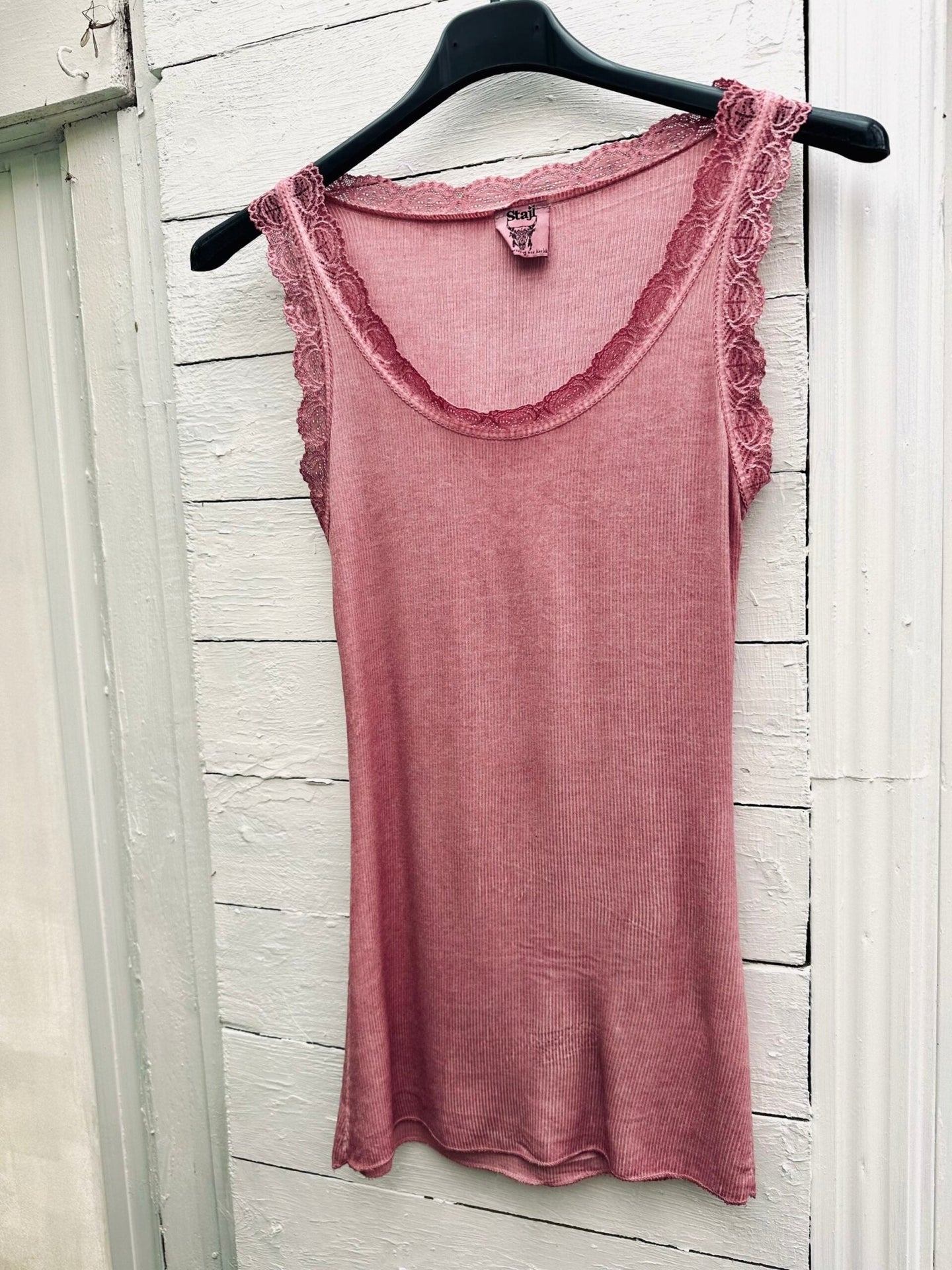 Spetstoppen är tillverkad av ett högkvalitativt material som består av 95 % viskos och 5 % elastan. Denna kombination ger en mjuk och bekväm känsla mot huden, och elastanen bidrar till extra stretch för optimal passform. Dessutom är viskos ett andningsbart material som hjälper till att hålla dig sval och torr. Kvaliteten på detta material gör att toppen håller sin form och färg även efter flera tvättar.