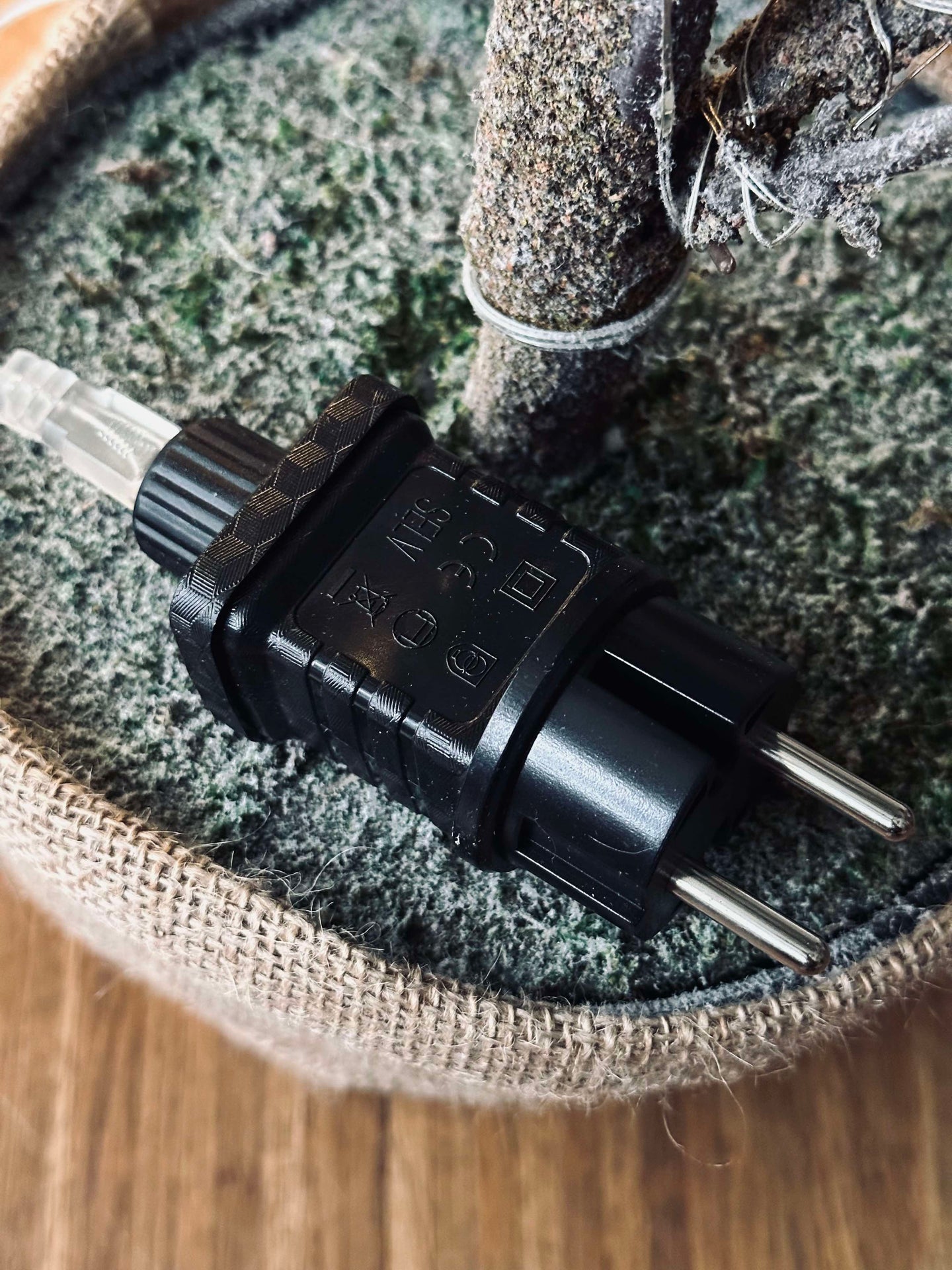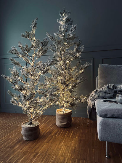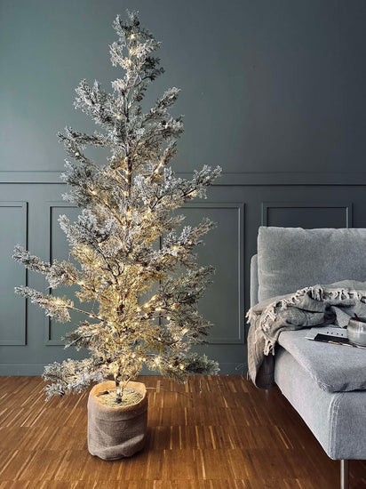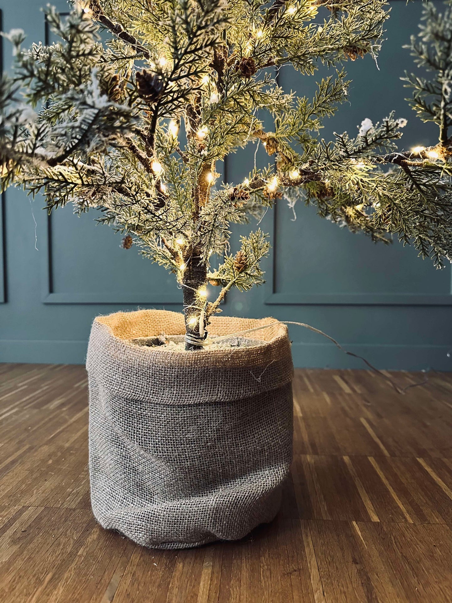 Ljusträdet levereras med en äkta jutekruka, vilket ger en naturlig och jordnära känsla till din juldekoration. Jutekrukan kompletterar trädet på ett harmoniskt sätt, samtidigt som den erbjuder en stabil bas. Det robusta materialet i jutekrukan säkerställer hållbarhet och gör det enkelt att placera ljusträdet var som helst i ditt hem, oavsett underlag.