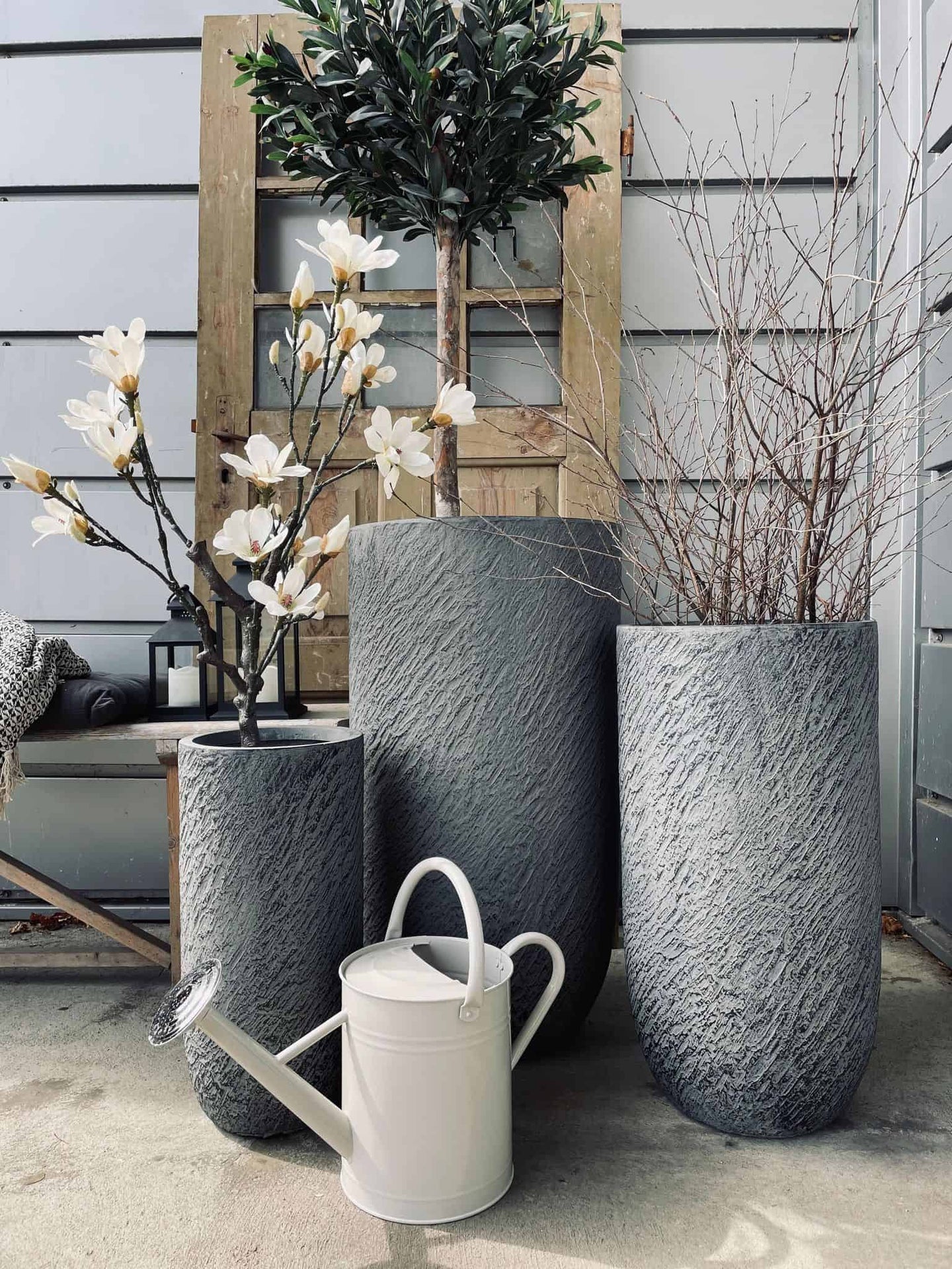 Trädgårdskruka set av 3 stora krukor - Mörkgrå
