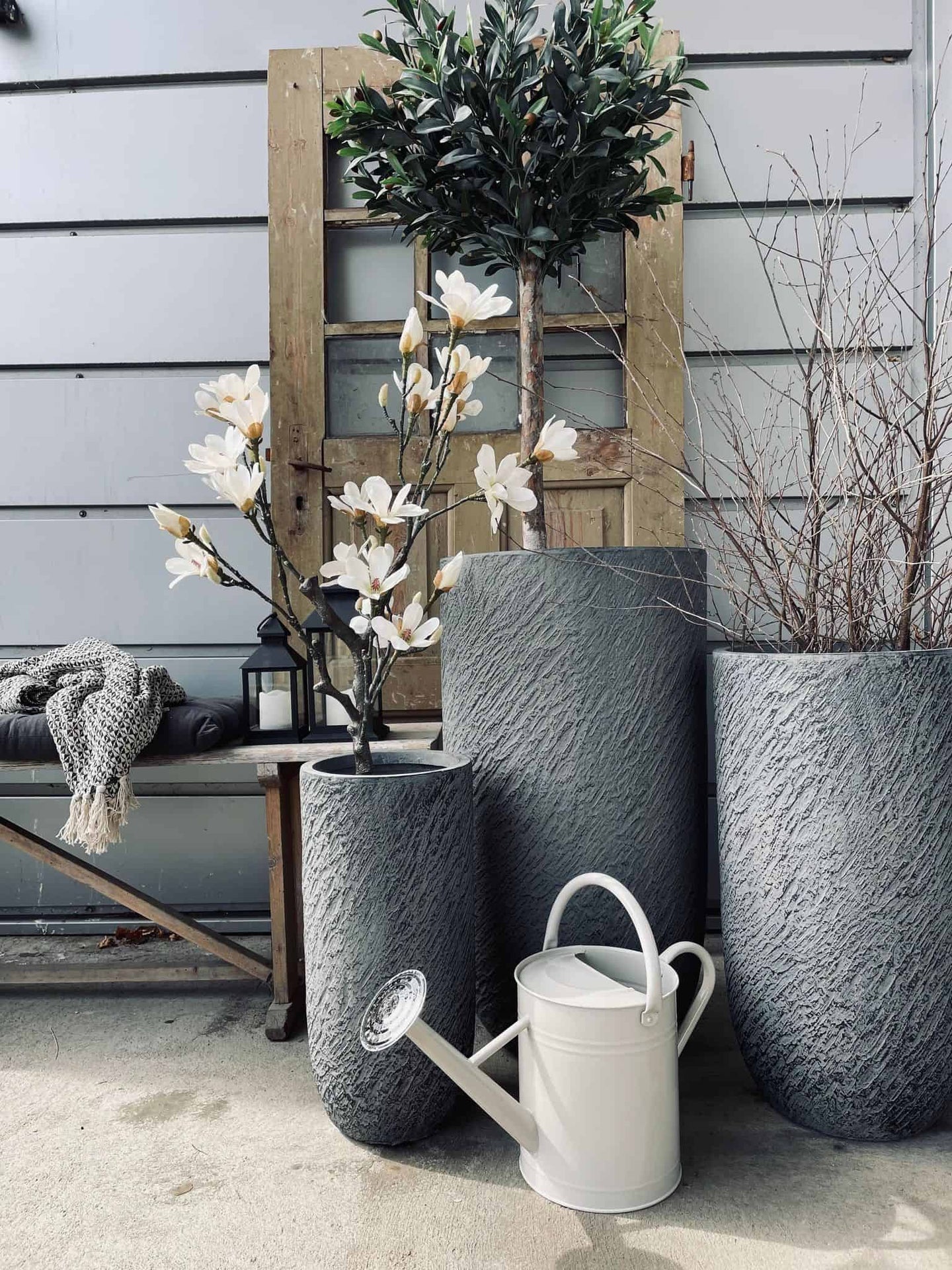 - Set med 3 stora trädgårdskrukor
