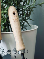 Riven är tillverkad av trä och metall, vilket säkerställer en robust konstruktion som klarar av olika trädgårdsuppgifter. Denna kombination av material ger styrka och hållbarhet, vilket gör att du kan lita på din kratta år efter år.