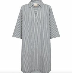 Föreställ dig en hektisk dag där du behöver både stil och komfort. Tunika Hella - Blå Rand erbjuder en lätt och bekväm lösning med sin avslappnade design. Denna tunika gör det enklare att känna sig samlad och bekväm hela dagen.