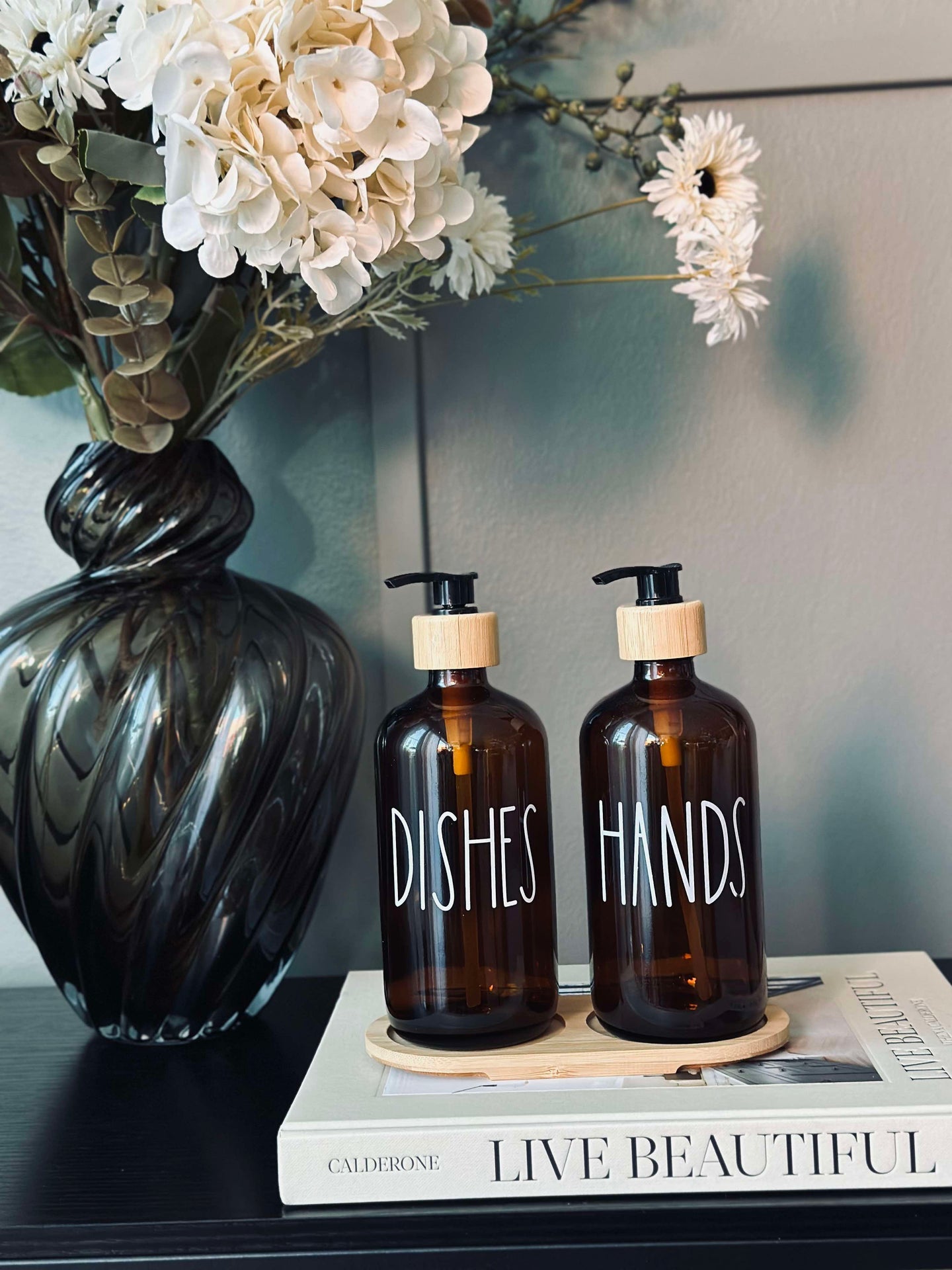 - Sæbedispenser-setet innehåller 2 x sæbedispenser och en bricka