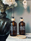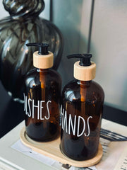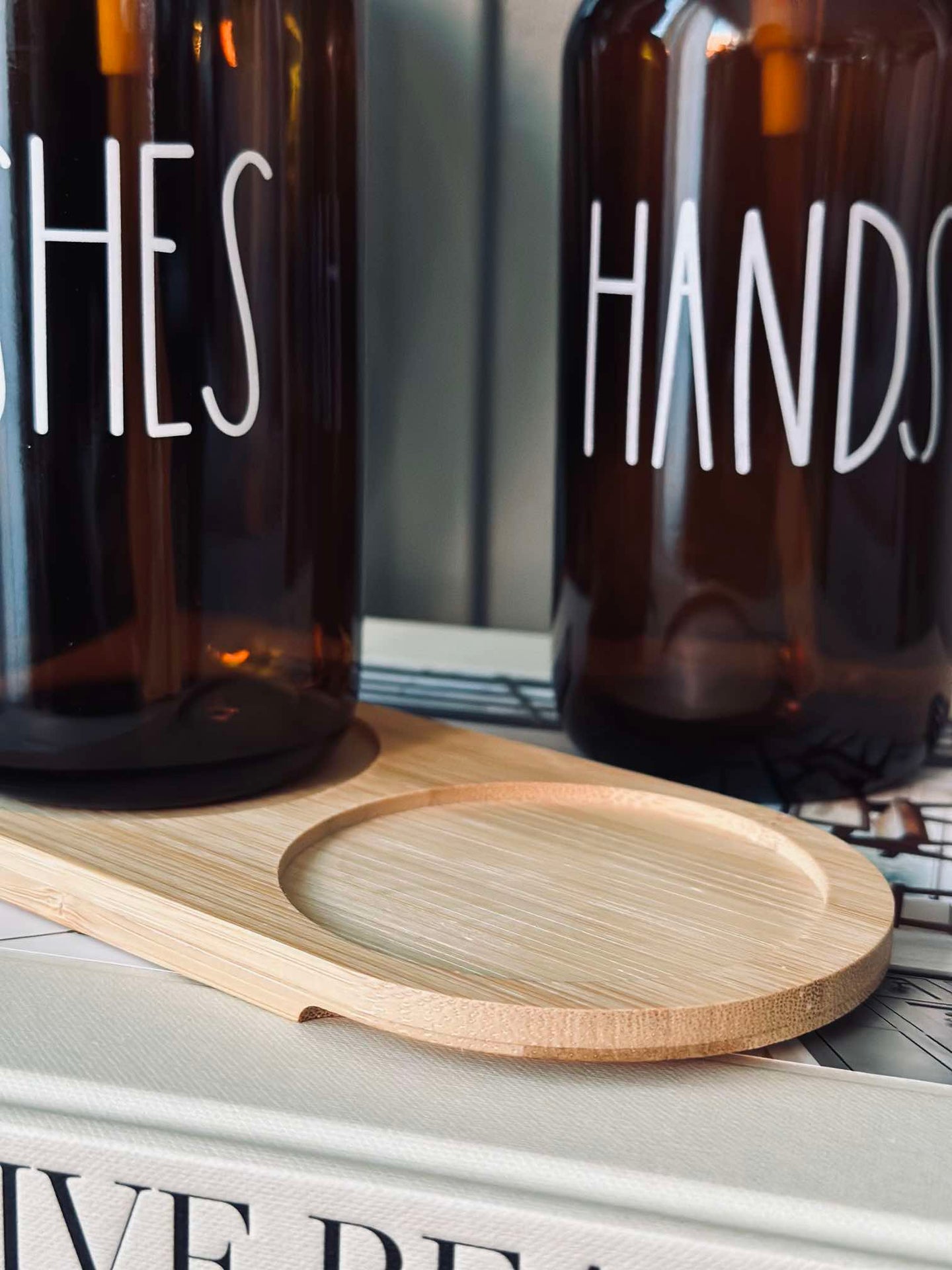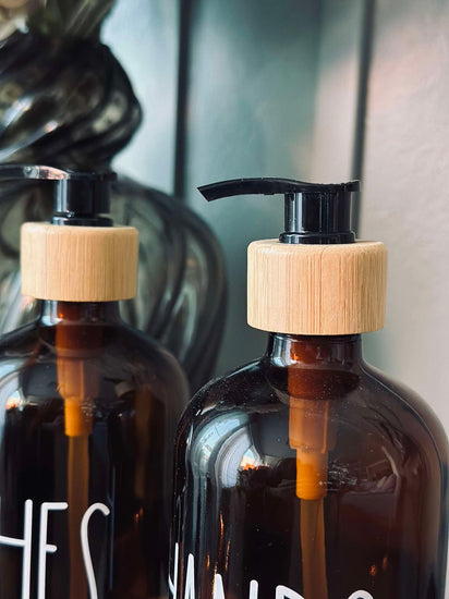 Materialet i tvålpump-setet kombinerar glas och bambu, vilket ger både en visuell och praktisk fördel. Glaset tillför en tidlös estetik och är lätt att rengöra, medan bambu bidrar med en naturlig känsla och hållbarhet. Tillsammans skapar dessa material en harmonisk balans mellan funktionalitet och design, vilket gör dem till ett tilltalande val för badrummet.