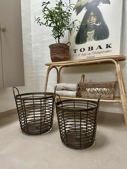 - Färgen på tvättkorgen är brun