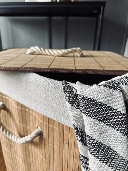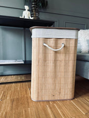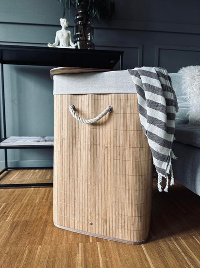 Tvättkorgen är tillverkad av bambu, vilket ger den en naturlig och hållbar konstruktion. Bambu är ett lättviktigt material som är både starkt och motståndskraftigt mot fukt, vilket gör korgen praktisk för daglig användning i hemmet. Dessutom bidrar bambuns naturliga estetik till en harmonisk atmosfär i rummet, vilket gör det enkelt att integrera korgen i olika inredningsstilar.