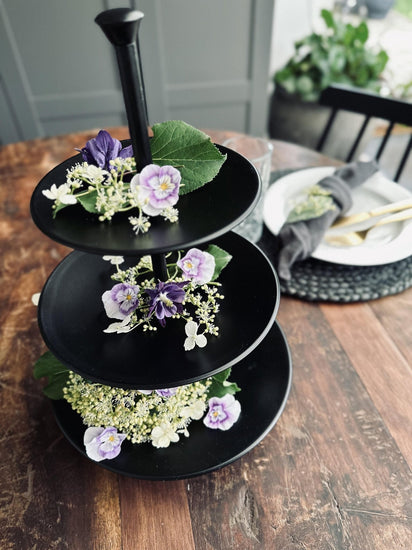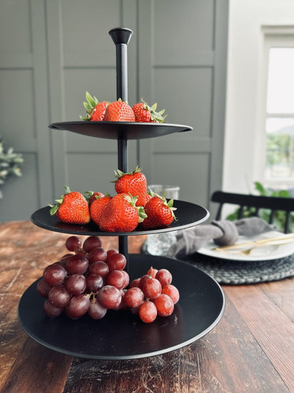 Skapa ett stilfullt och organiserat hem med 'Uppsättning i svart metall'. Ge dina snacks och frukter en vacker presentation som kommer att imponera på dina gäster. Uppgradera ditt hem med detta praktiska serveringsfat idag!