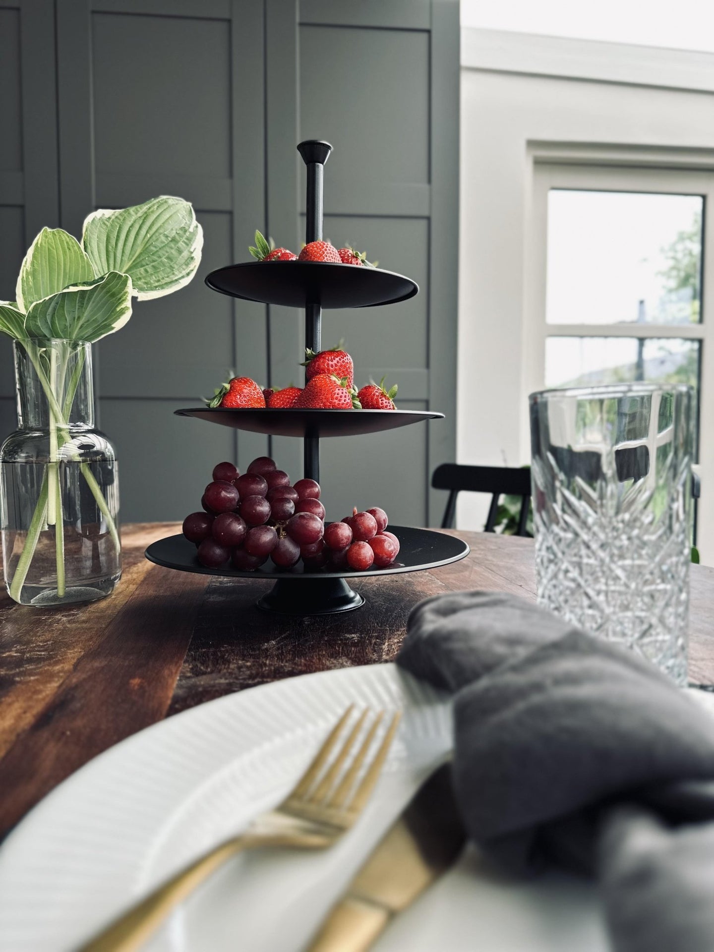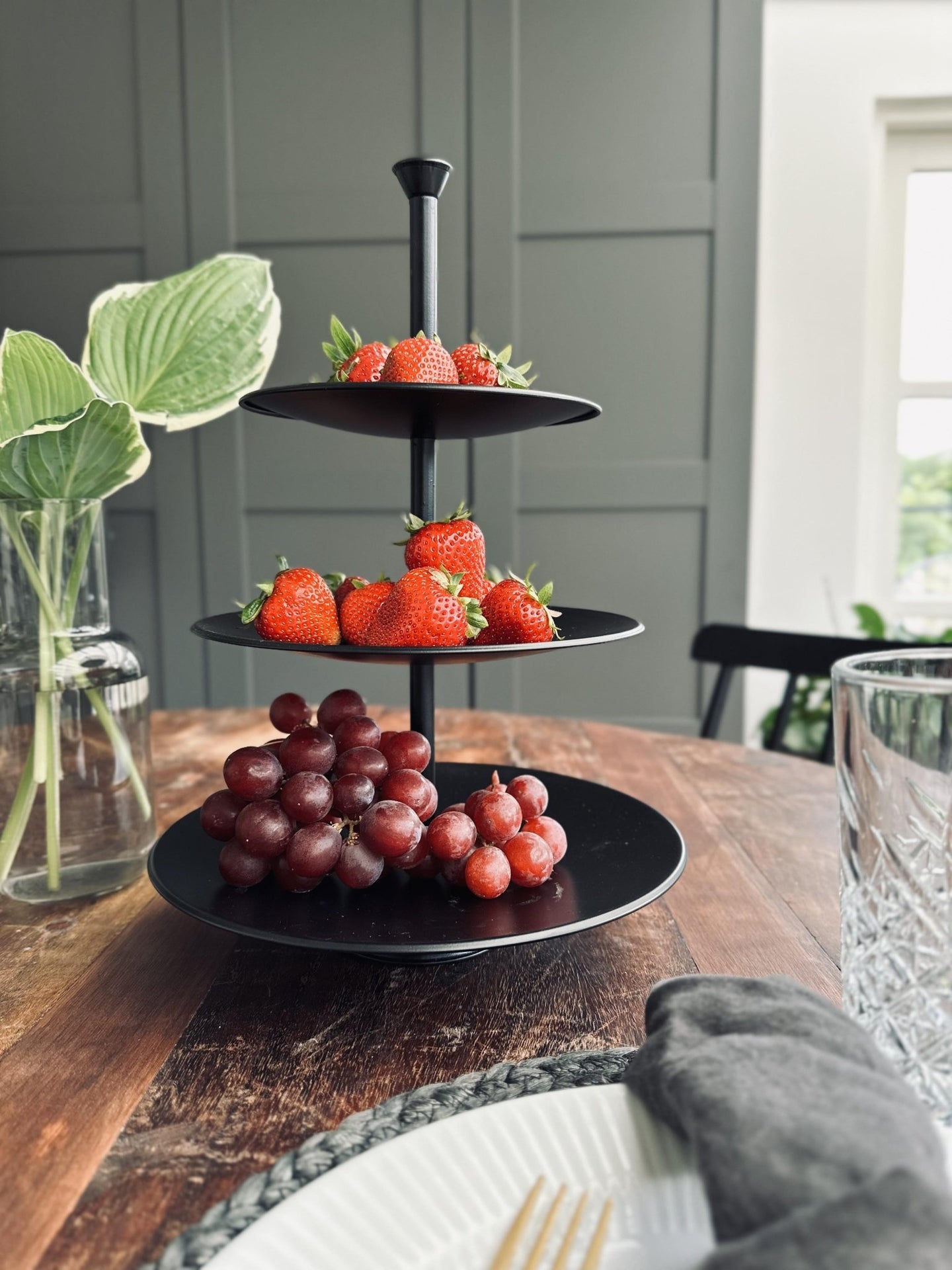För dig som vill förhöja ditt hem med snygg och praktisk interiör, är 'Uppsättning i svart metall' ett perfekt val. Den erbjuder en stilfull lösning för att organisera och presentera dina favorit snacks och frukter på ett inbjudande sätt.
