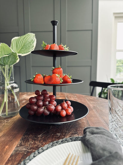 - Enkelt och stilsäkert serveringsfat tillverkat av metall
