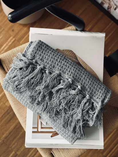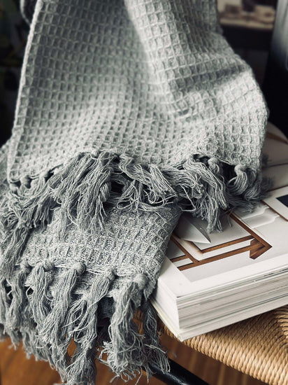 Våfflad bomullsfilt - Grå