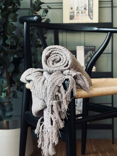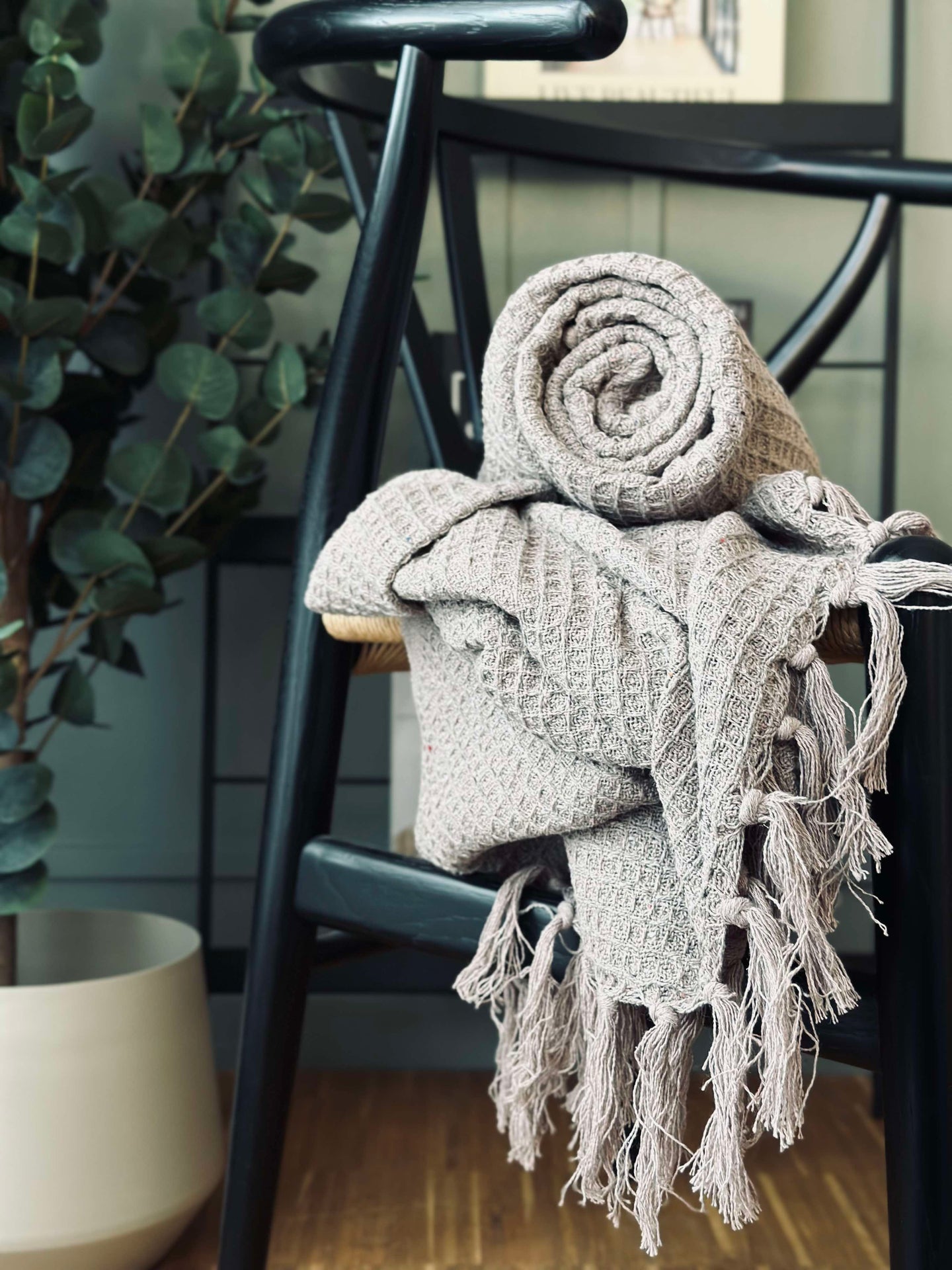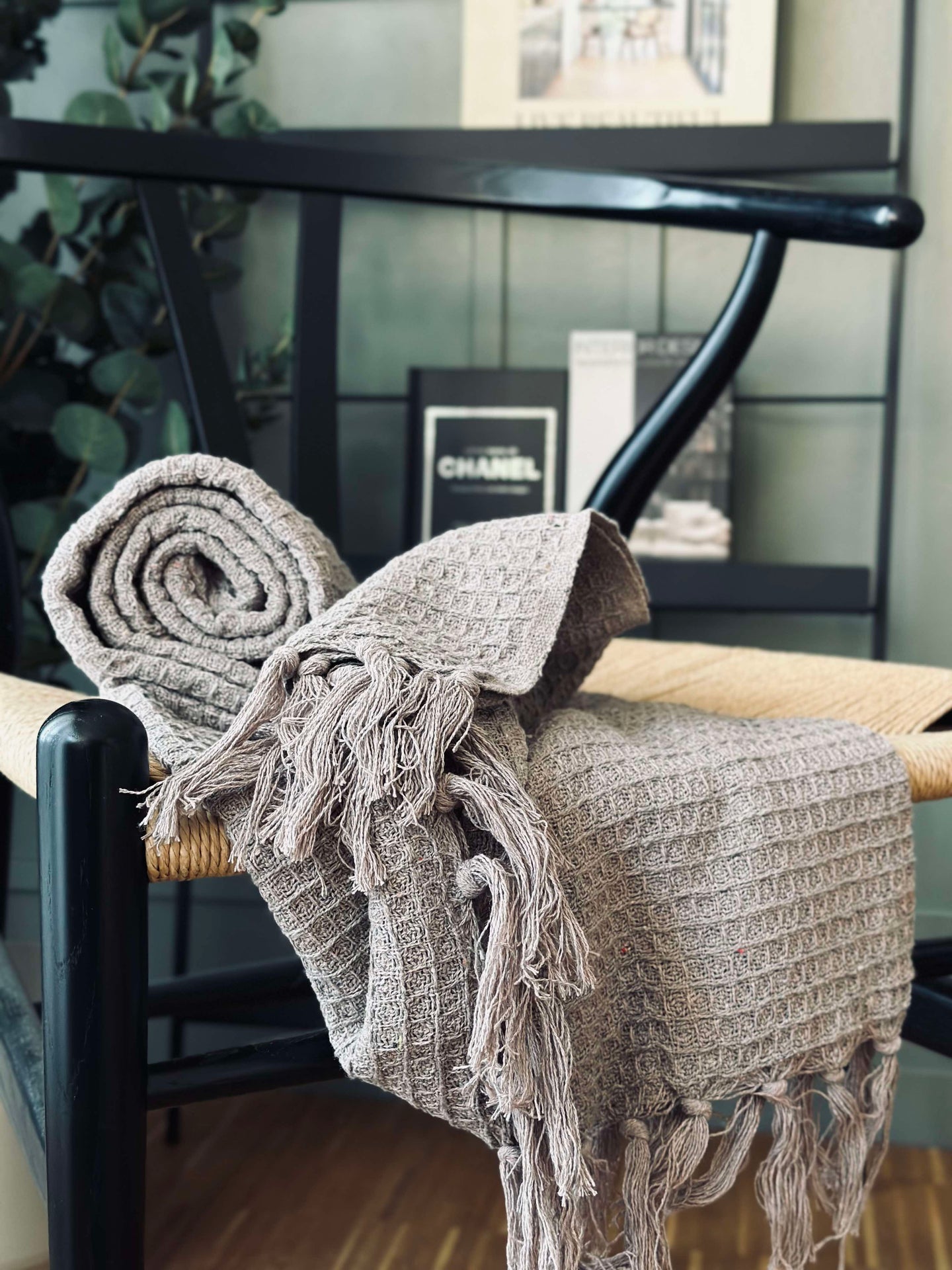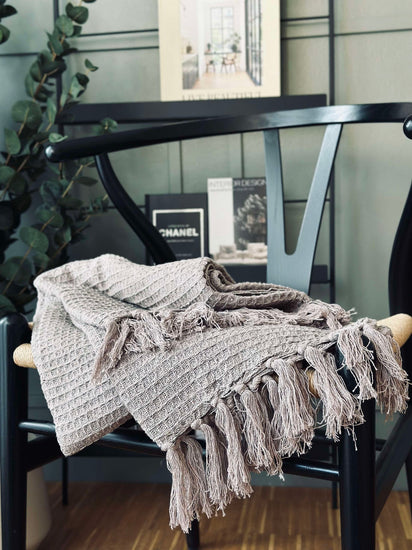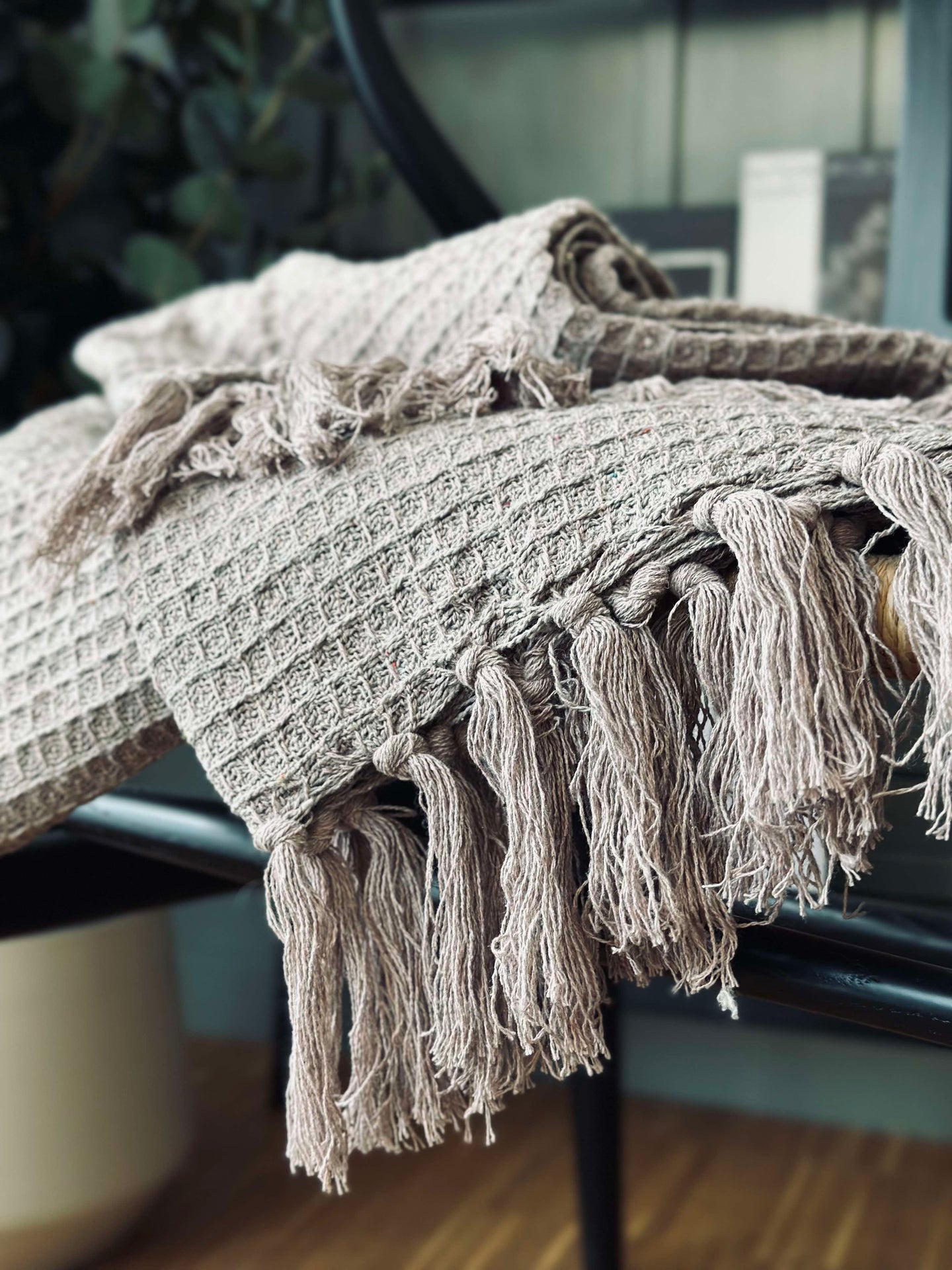 Ge dig själv den komfort du förtjänar och gör din vardag lite mer mysig med våfflad bomullspläd - taupe. Njut av varje stund med denna hållbara och stilrena filt som kommer att hålla dig varm under de kyligare kvällarna. Värm både dig själv och ditt hem med denna underbara pläd!