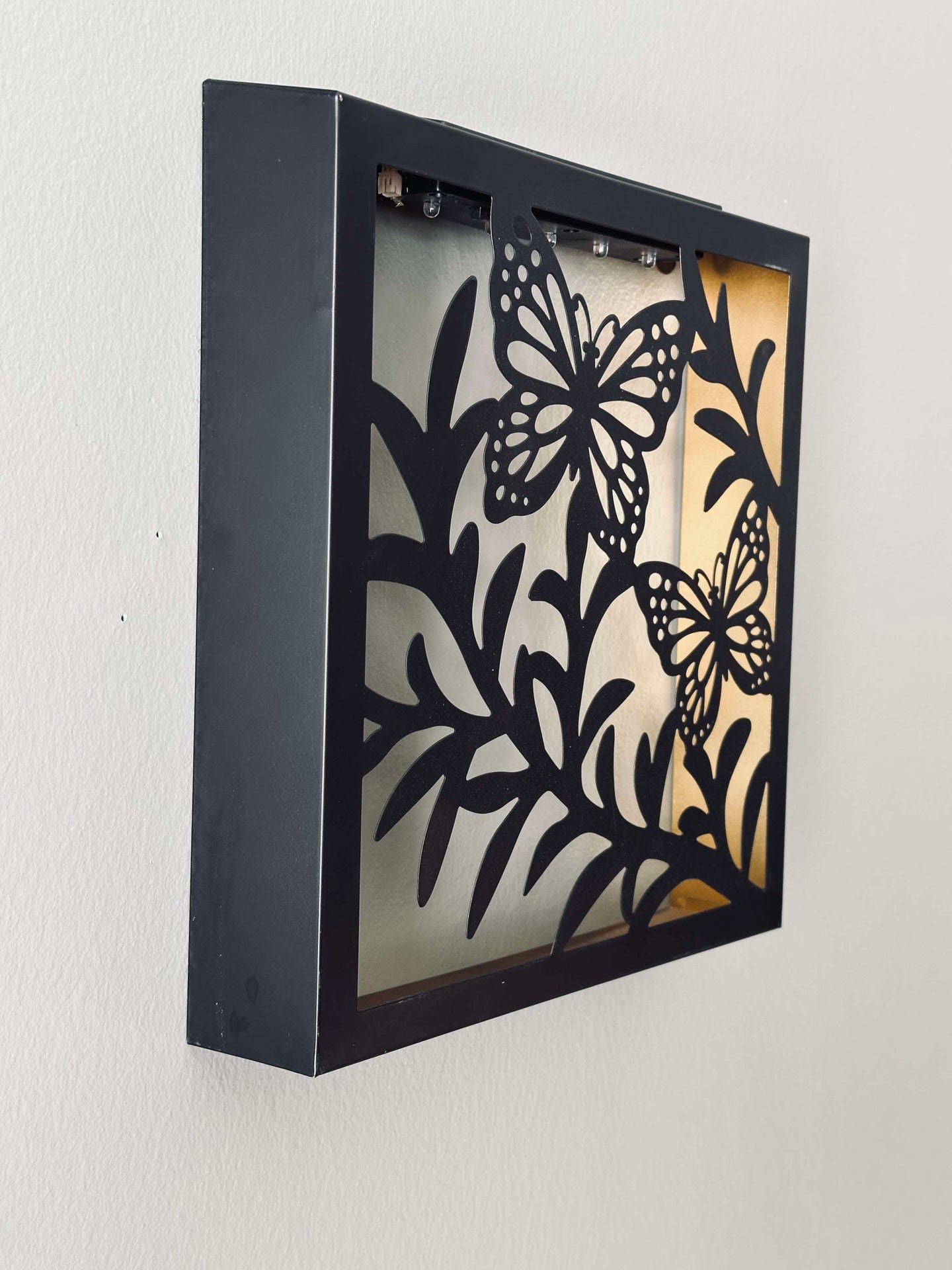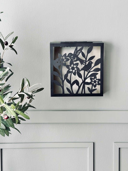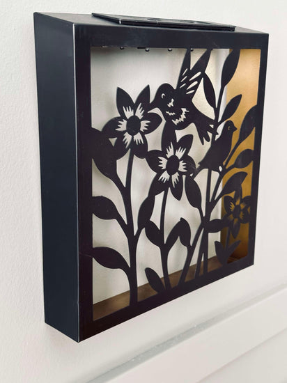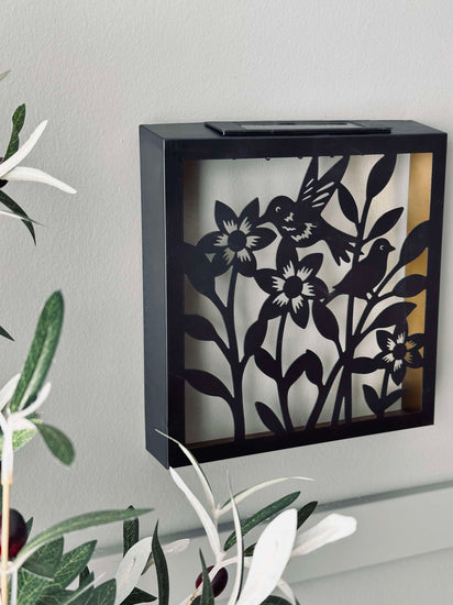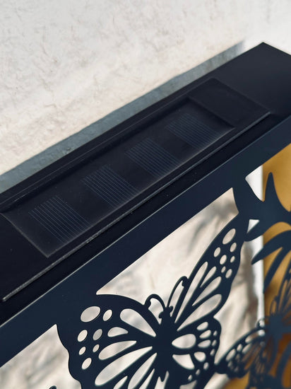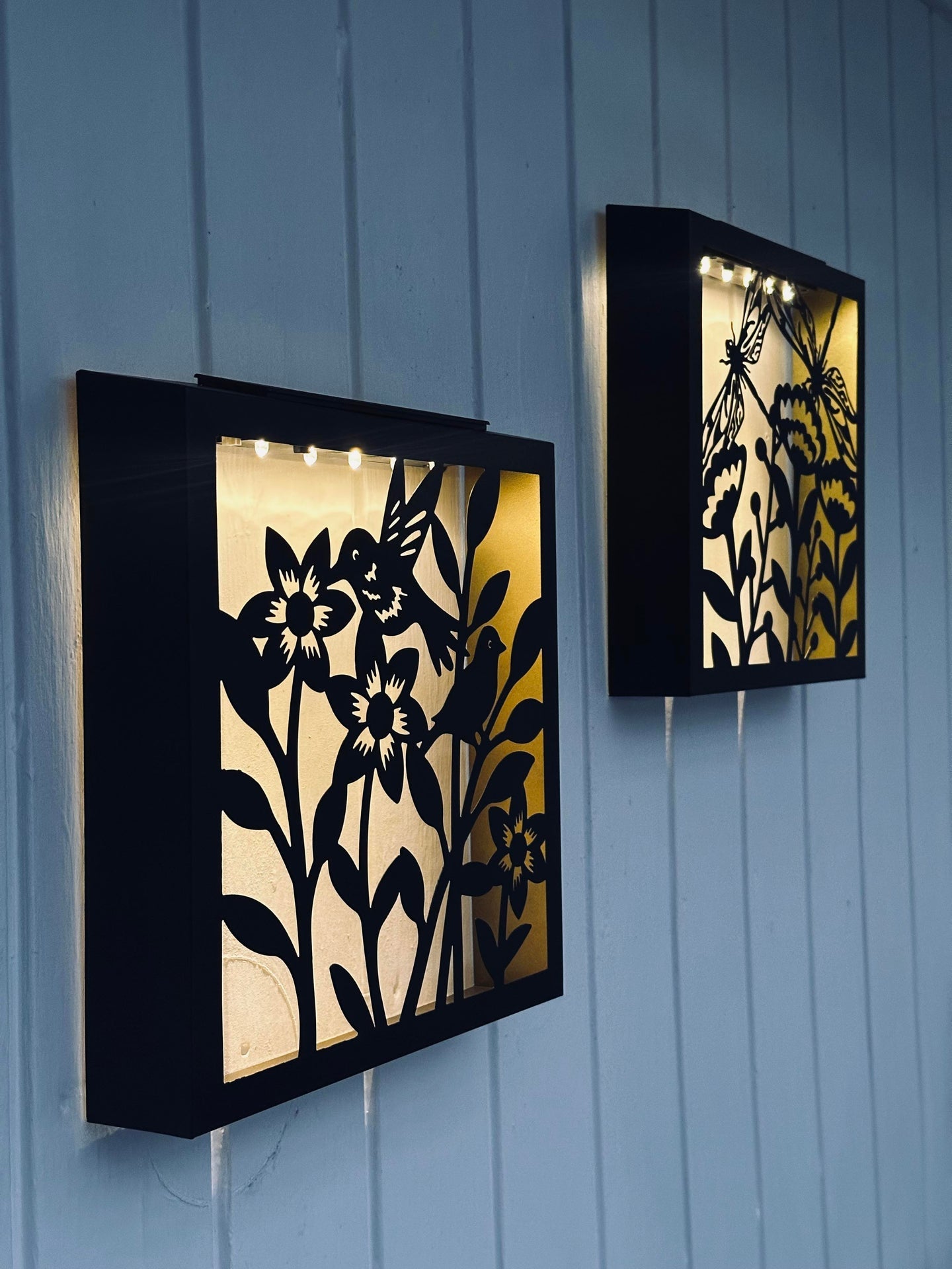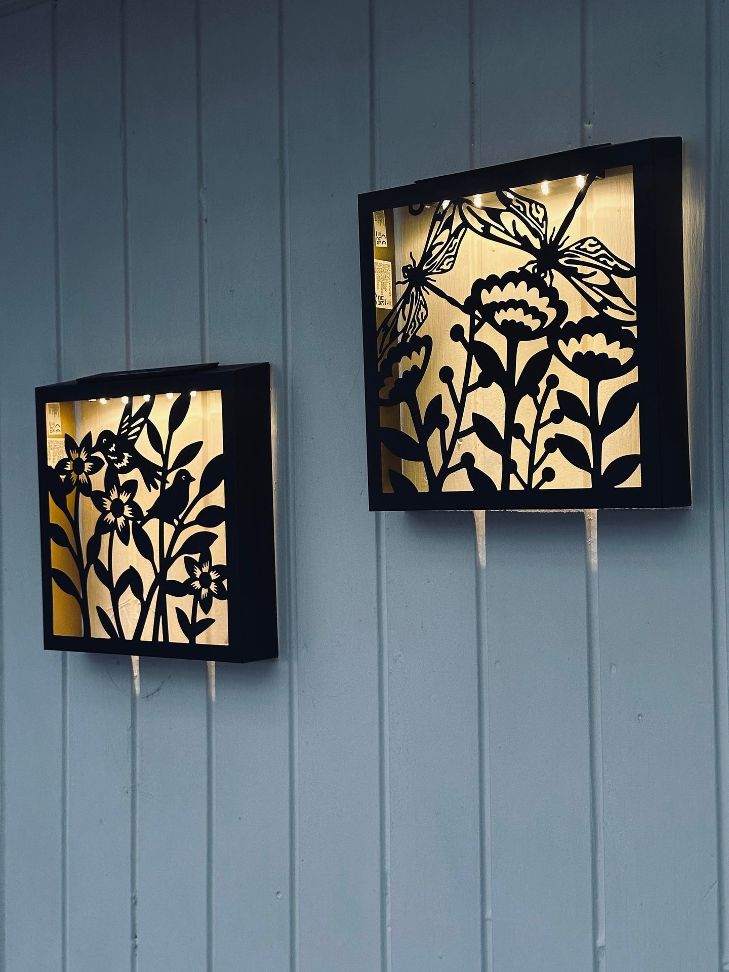 - Väggdekorationen har solceller och tänds automatiskt i mörker