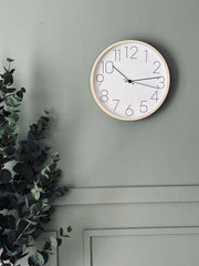 Denna väggklocka med en ram i träutseende ger en varm och naturlig känsla till ditt hem. Träramens subtila estetik skapar en harmonisk atmosfär, vilket gör den till ett utmärkt komplement till olika inredningsstilar. Denna design kombinerar funktionalitet med stil och bidrar till en lugn och inbjudande miljö i rummet.