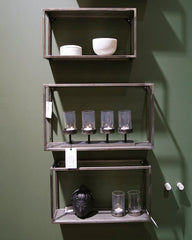 - Medium hyllas storlek är H: 26cm x B: 46cm x D: 15cm och H: 22cm x B: 42cm x D: 15cm