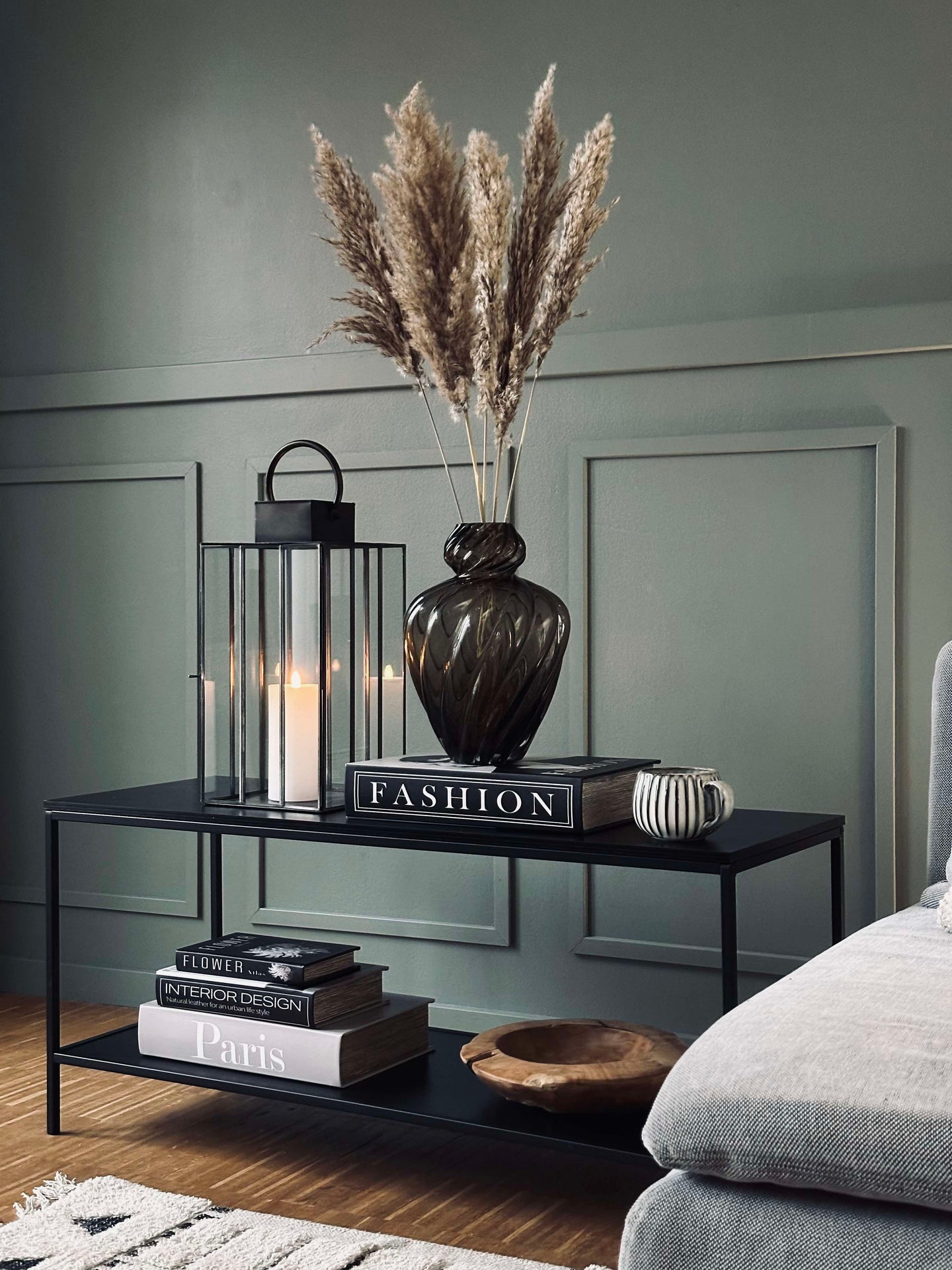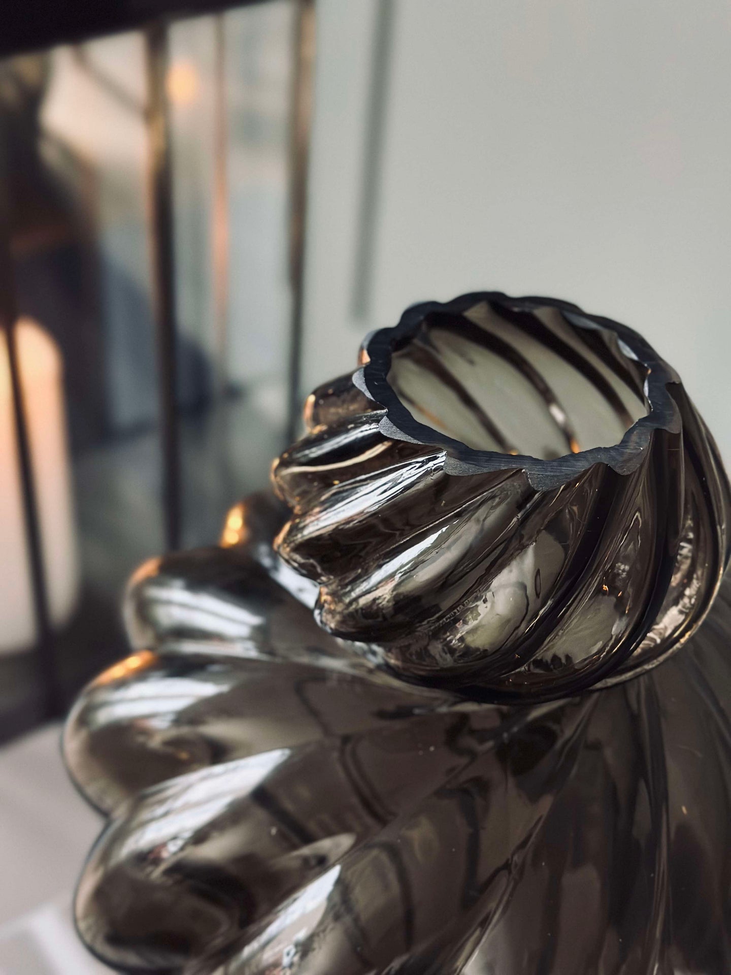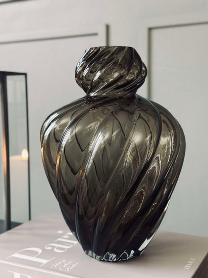 - Färgen på glasvasen är grå/brun