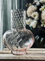 Denna blomvas är tillverkad av glas, vilket ger en tidlös och mångsidig estetik som smälter in i olika inredningsstilar. Glasets transparens framhäver blommornas naturliga skönhet, och ljusgenomsläppet skapar en luftig känsla i rummet. Materialets hållbarhet säkerställer en långvarig användning, medan dess enkelhet i underhåll gör det lätt att rengöra och hålla i toppskick.