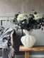 Denna vas är tillverkad av glas med en matt, satinliknande finish, vilket skapar en subtil och sofistikerad känsla i rummet. Den diskreta ytan dämpar ljusreflektioner och ger en mjukare visuell upplevelse, vilket gör att blommorna framhävs på ett naturligt sätt. Dessutom är materialet lätt att rengöra, vilket gör det enkelt att bevara vasens skönhet över tid.