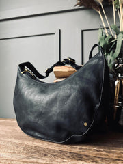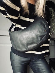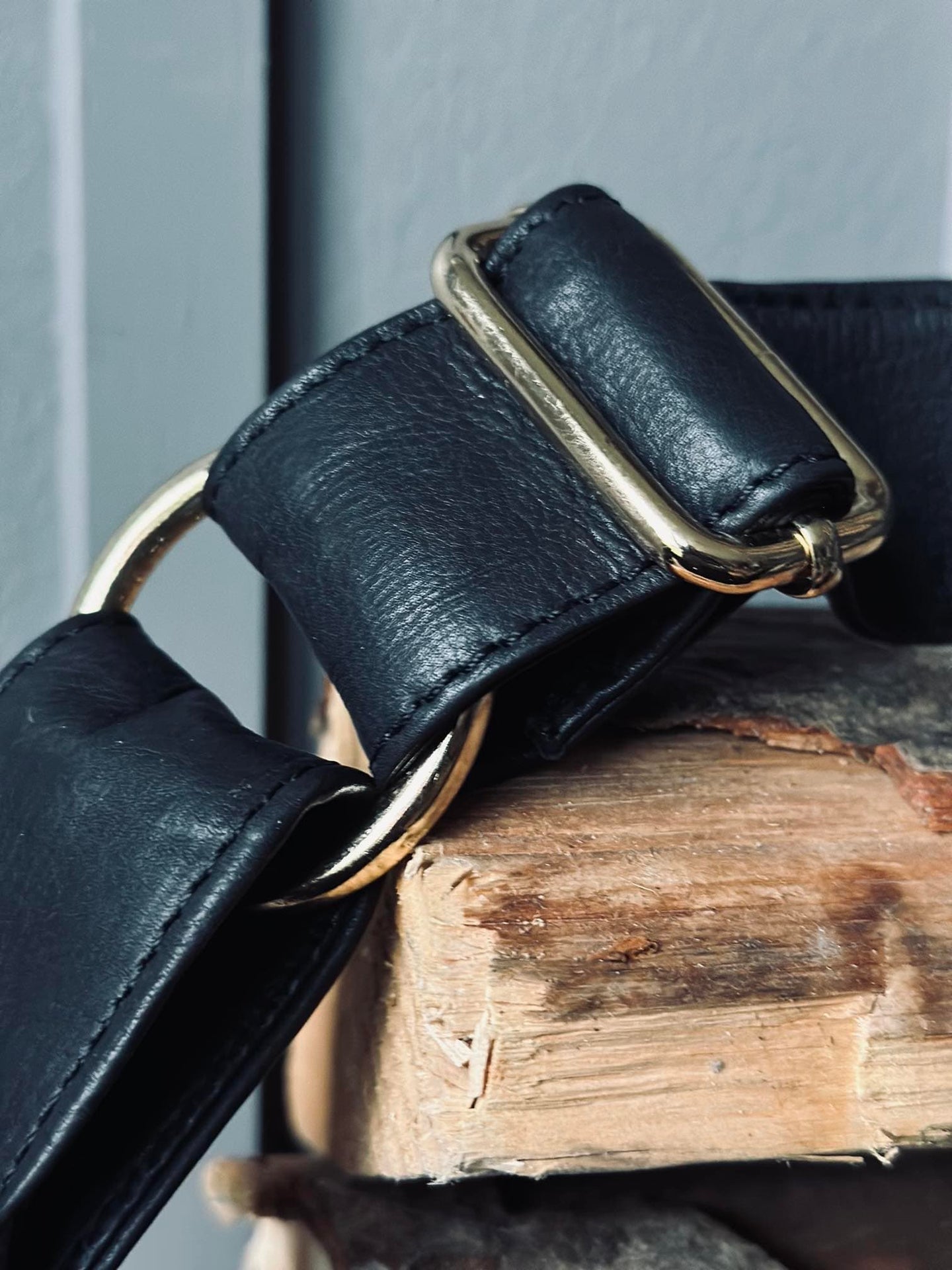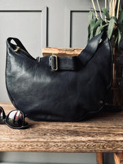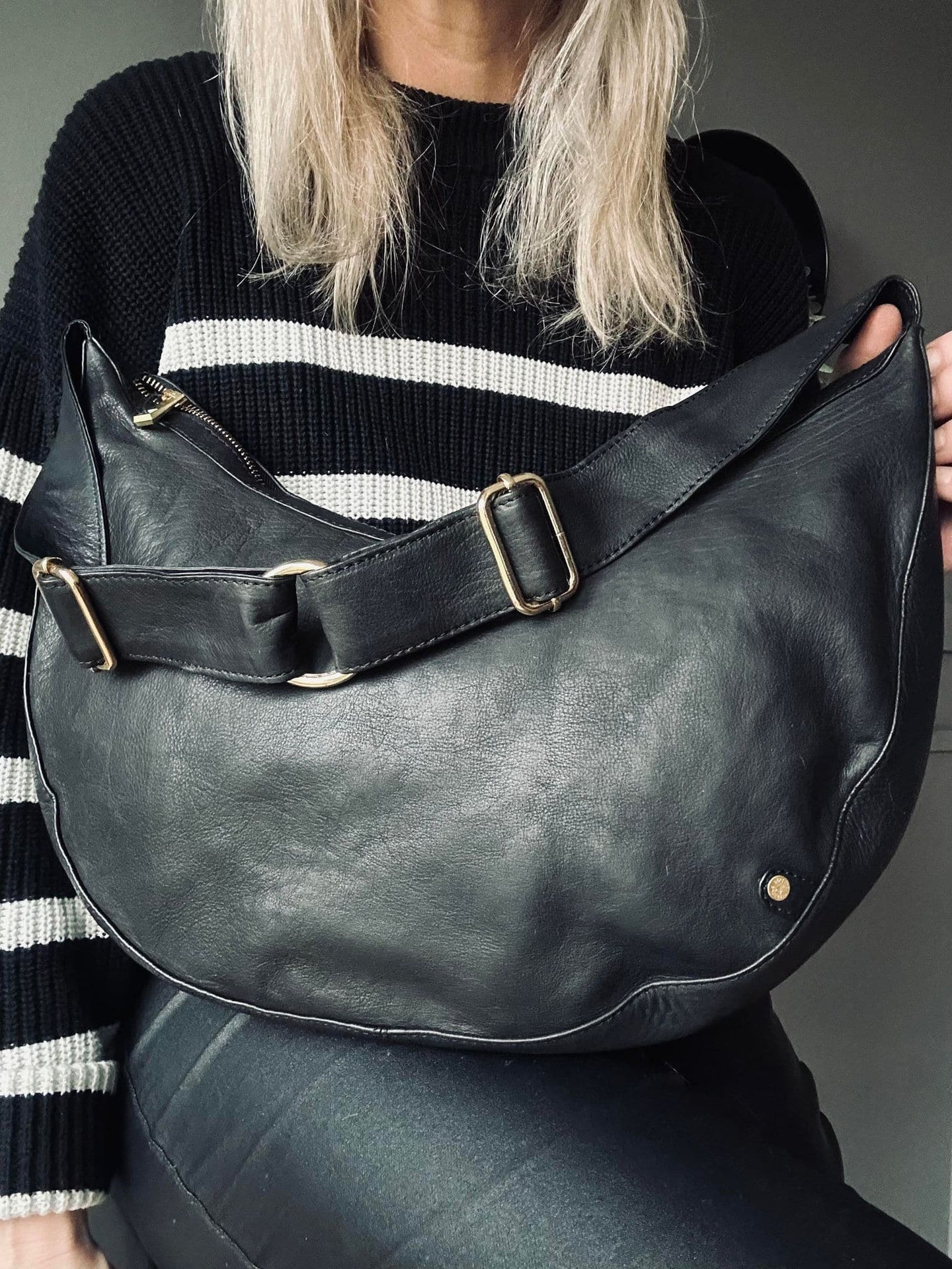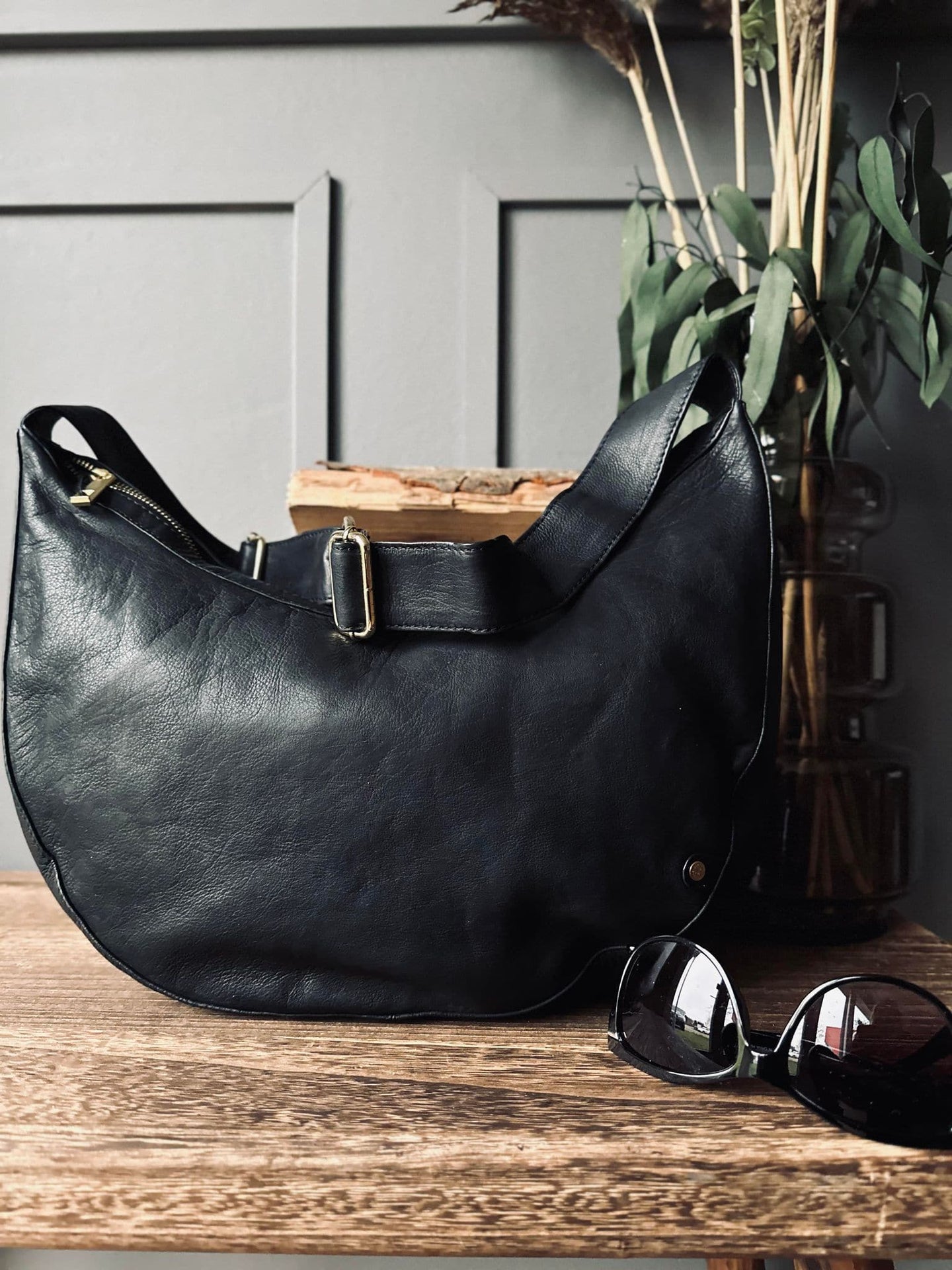 Bär med dig allt du behöver i stil med vår svarta läderväska. Dess tidlösa design och justerbara rem gör att du kan anpassa den efter ditt behov, vilket gör den till en perfekt följeslagare i alla lägen.