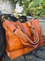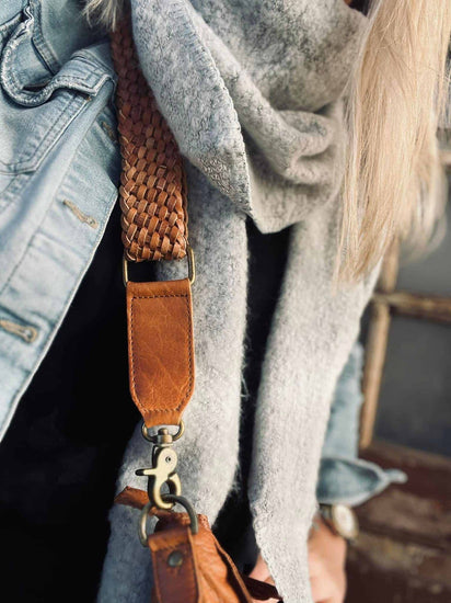 - Uppdaterar favoritväskan eller anpassar en ny med flätad läderaxelrem