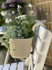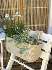Har du begränsat utrymme men drömmer om att skapa en lummig oas? Med denna upphängbara växtlåda i krämigt utförande blir det nu möjligt att ta trädgården till en helt ny höjd. En smart lösning för den moderna trädgårdsälskaren.