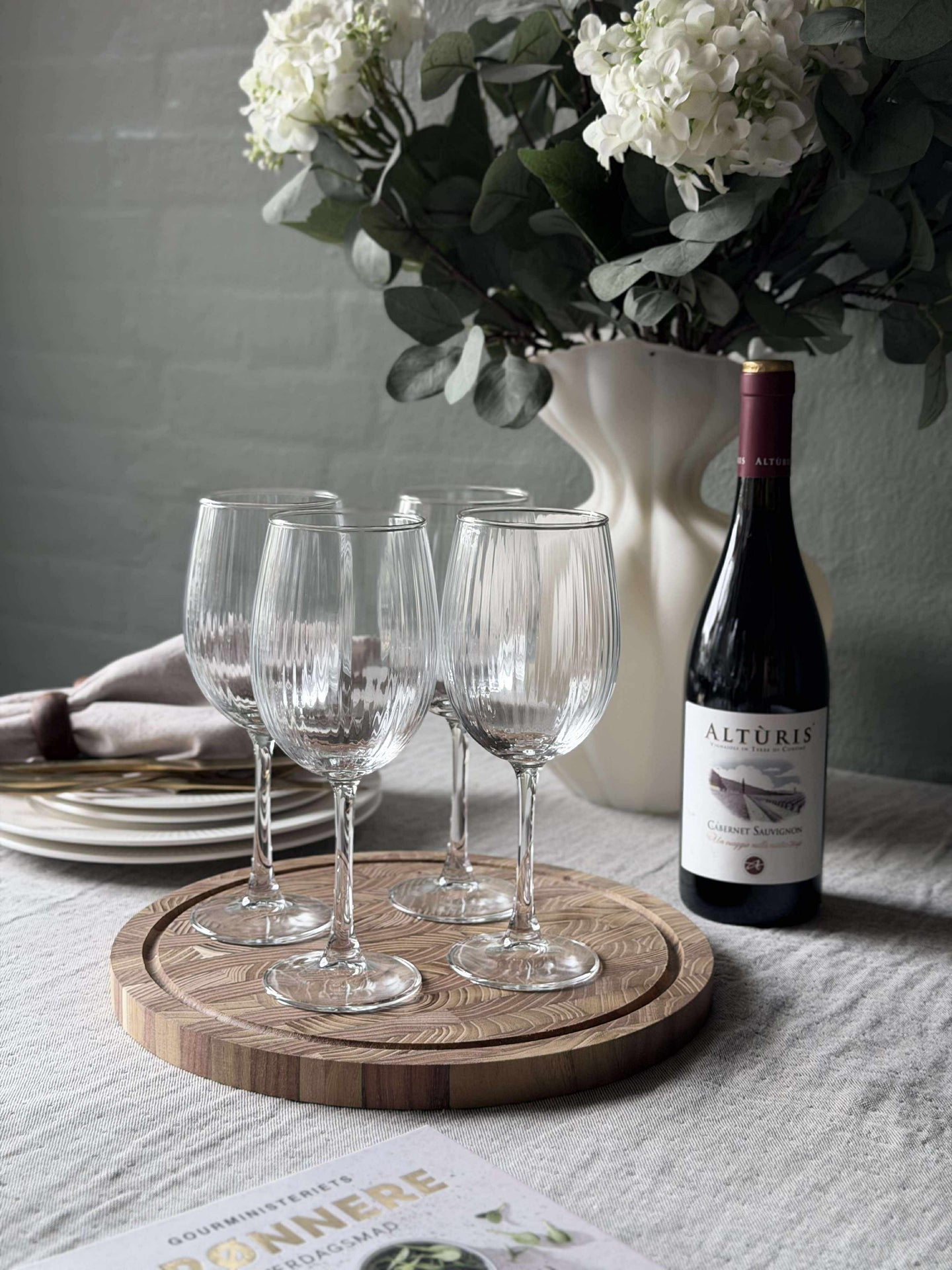 När du bjuder in till middag vill du kanske ha något som förhöjer upplevelsen utan krångel. Detta set med fyra vinglas erbjuder en subtil kombination av stil och funktionalitet, vilket gör varje vinupplevelse aningen mer speciell och njutbar.